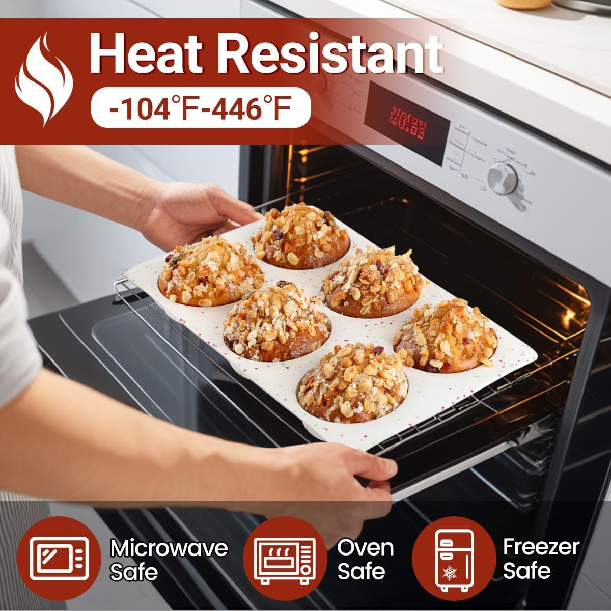 - High Resistant: Safe for oven, microwave, dishwasher, fridge, freezer. Wide heat resistant range: -104 to 446 degrees Fahrenheit, these muffin top pans are impermeable, practicality and durability