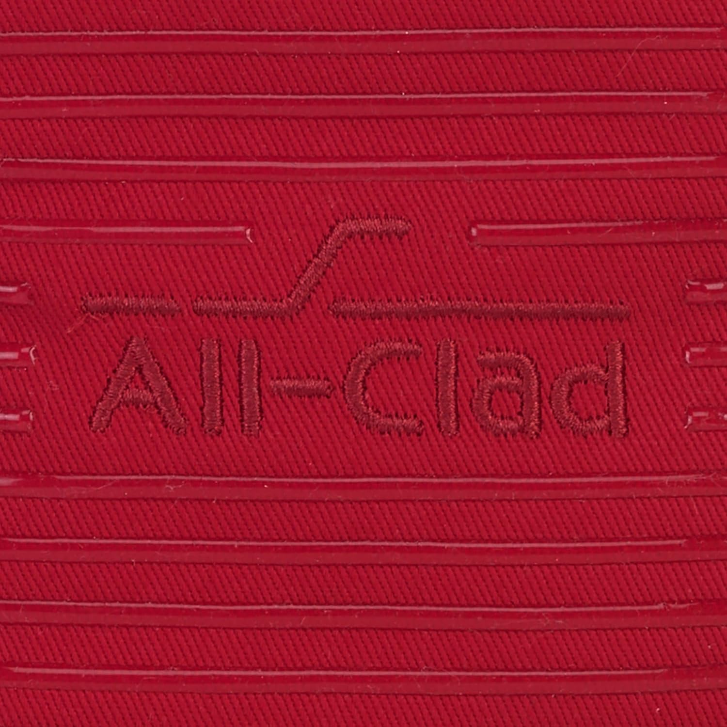 - EASY TO CARE FOR. Designed with heavyweight, stain-resistant twill, All-Clad silicone oven mitts and pot holders are entirely machine washable. Machine wash cold with like colors on gentle cycle, only non-chlorine bleach when needed and lay flat to dry. Fabric is stain resistant.
