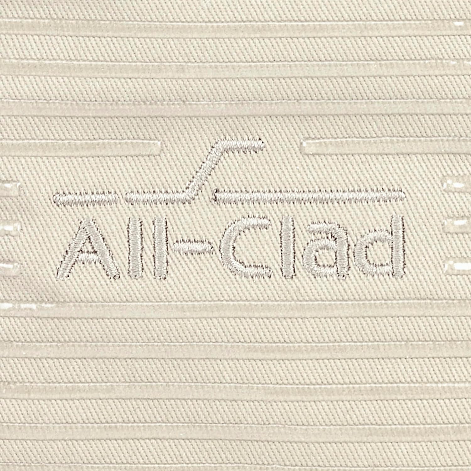- EASY TO CARE FOR. Designed with heavyweight, stain-resistant twill, All-Clad silicone oven mitts and pot holders are entirely machine washable. Machine wash cold with like colors on gentle cycle, only non-chlorine bleach when needed and lay flat to dry. Fabric is stain resistant.