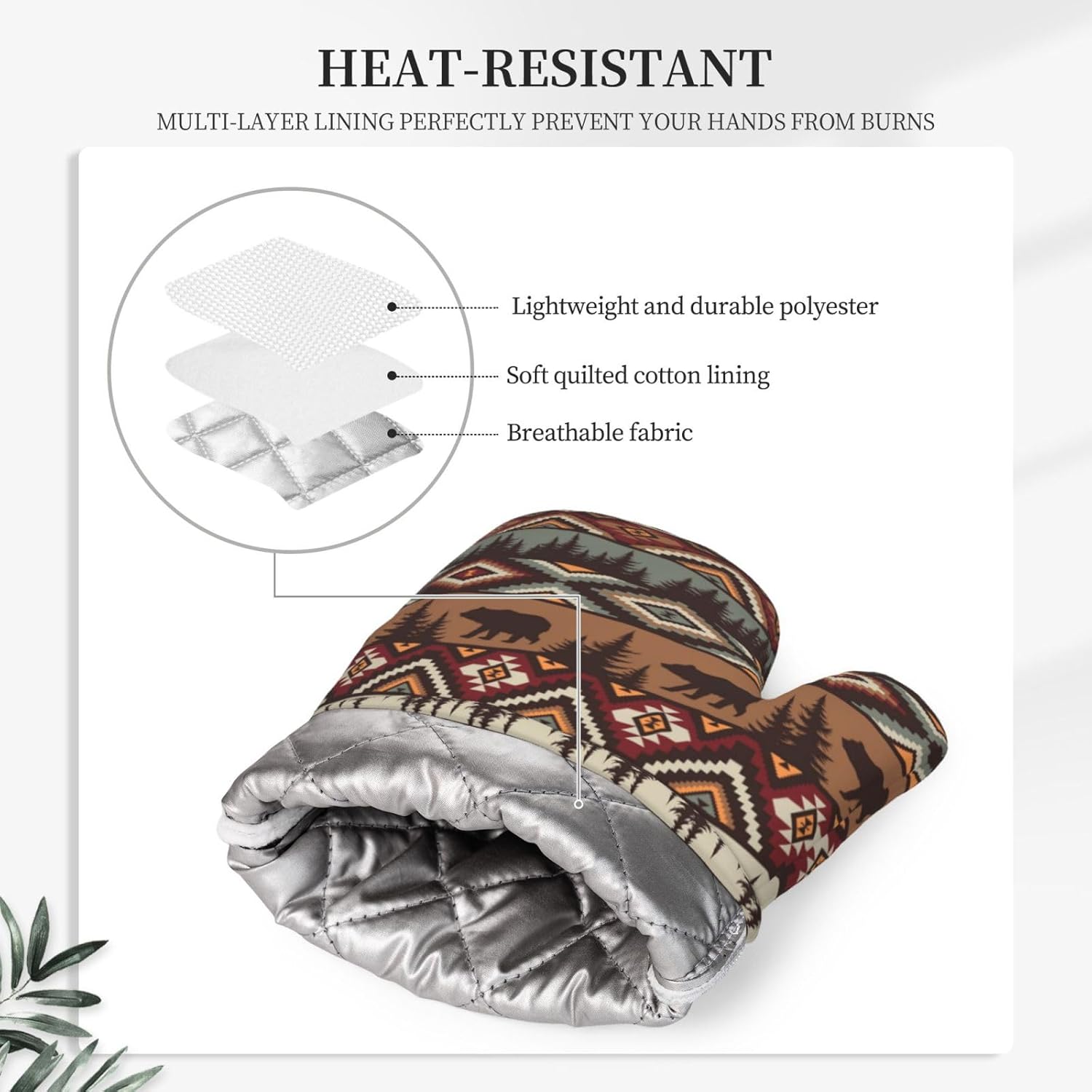 - MATERIA: These vintage rustic bear mountain oven mitts and pot holders made of polyester material, the surface with silicone and the lining is filled with soft cotton, which is comfortable to the touch, flexible to hold, making it a great choice for use in kitchen ovens or hot soup pots.
