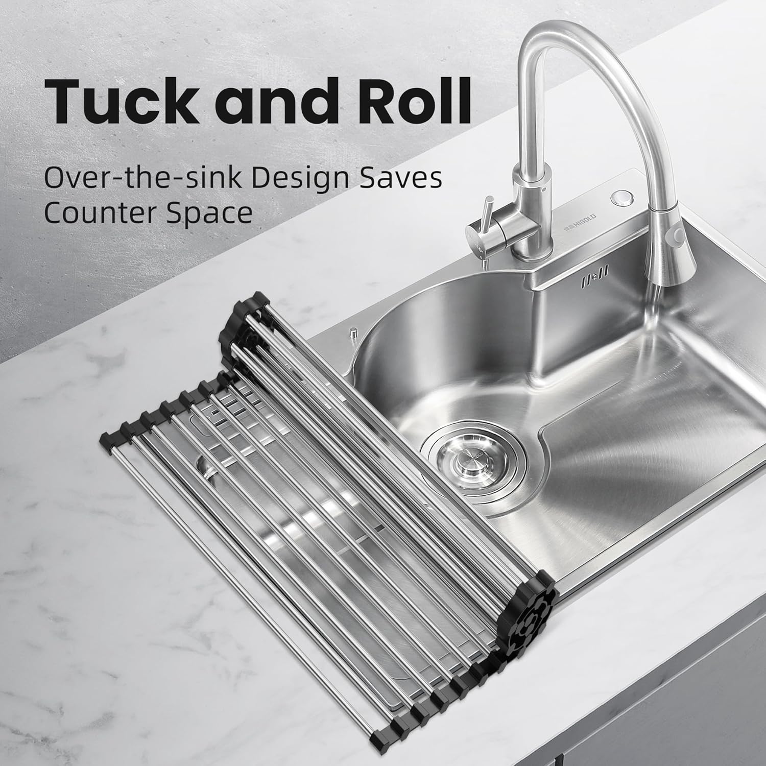 NEZUIBAN Dish Drying Rack with Roll Up and Over Sink for Kitchen,17.5"x11.8",Black