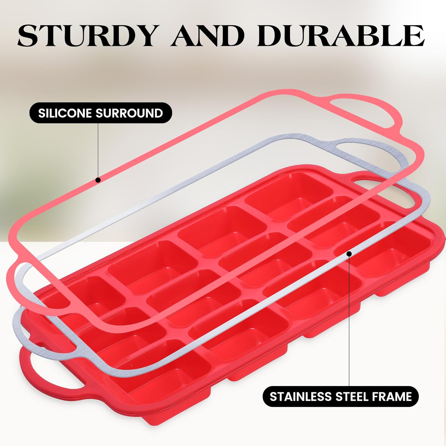 - Durable & Long Lasting:The reinforced frame provides exceptional durability and stability to the silicone brownie pan. You can confidently fill enery individual cavity with batter without worrying about the brownie baking pan bending or warping. Each nonstick brownie pan is 14.8 x 9 x 1 inch, cavity size is 2.5 x 2.5 x1 inch