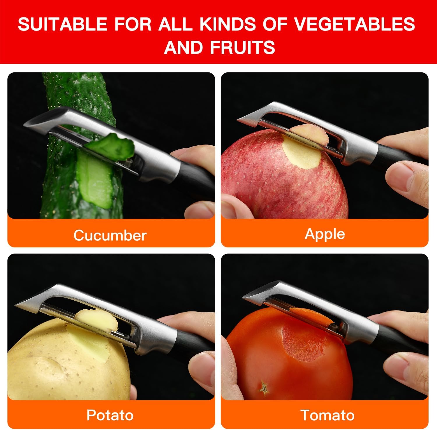 KULUNER 304 Stainless Steel Multi-Function Kitchen Peeler - With Solid Wood Handle, Sharp & Durable Blade, Effortlessly Peels Vegetables and Fruits, Essential Kitchen Tool