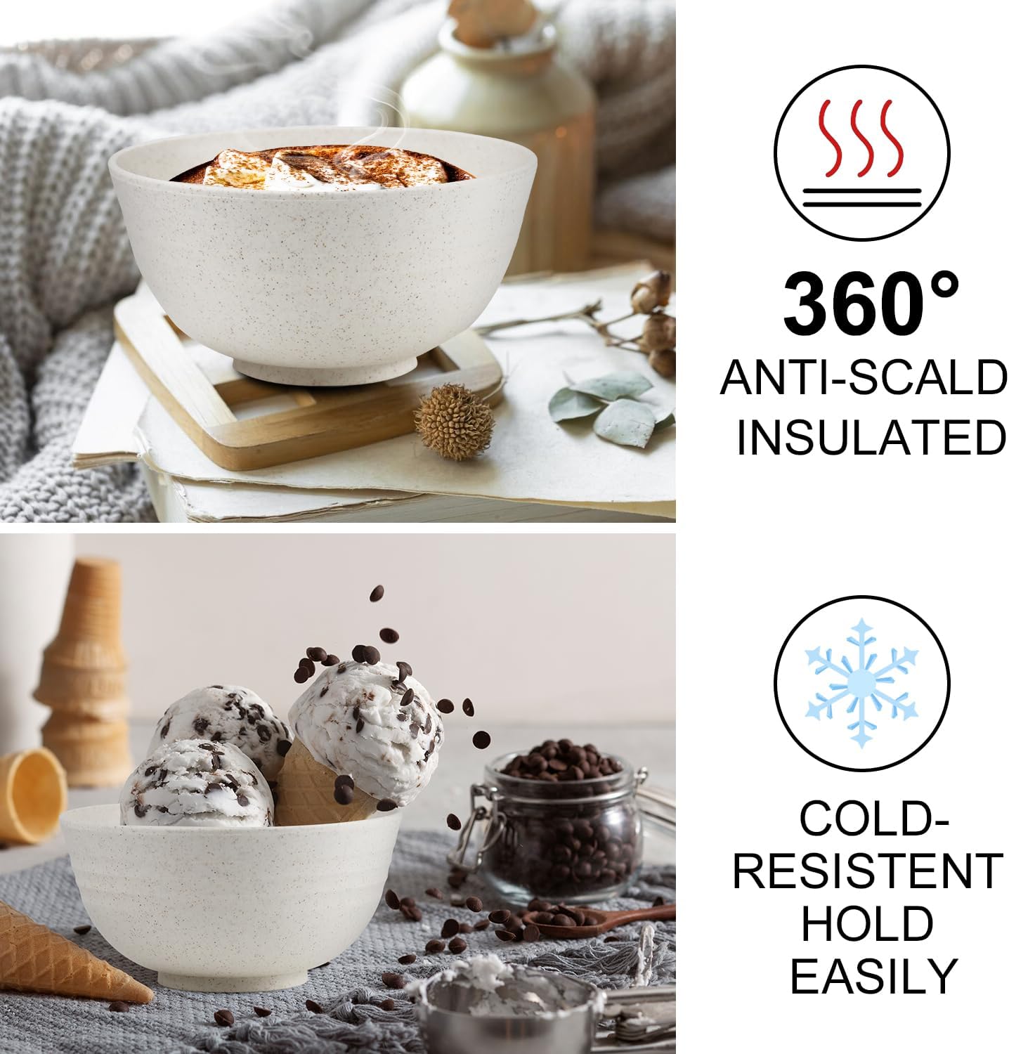- [Thoughtful Design]:These dessert bowls are not only stylish and compact, but also feature smooth, rounded edges that are easy on the hands and reduce the risk of warping or damage. Made with safe, non-toxic materials, they're the perfect alternative to plastic cereal bowls.
