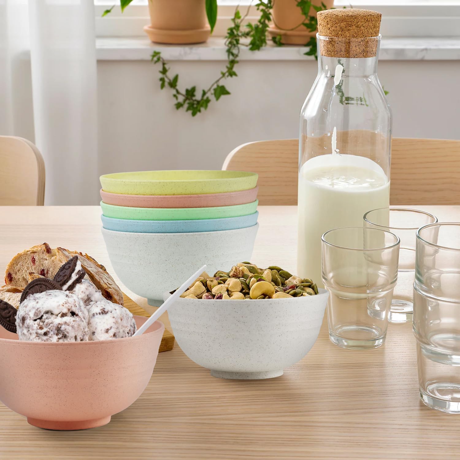- [Wheat Straw Material]:Our small bowls are made with organic wheat straw fiber, making them a healthy and fun addition to your tableware. They're BPA-free, non-toxic, odorless, and sturdy, offering a healthy and fun option.