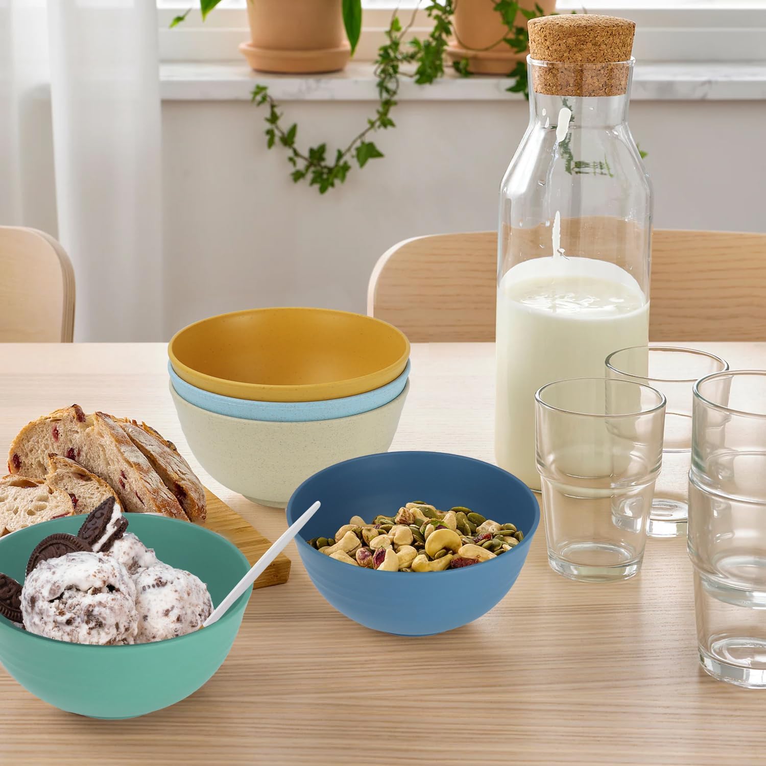 - [Thoughtful Design]:These yogurt bowls are not only stylish and compact, but also feature smooth, rounded edges that are easy on the hands and reduce the risk of warping or damage. Made with safe, non-toxic materials, they're the perfect alternative to plastic cereal bowls.
