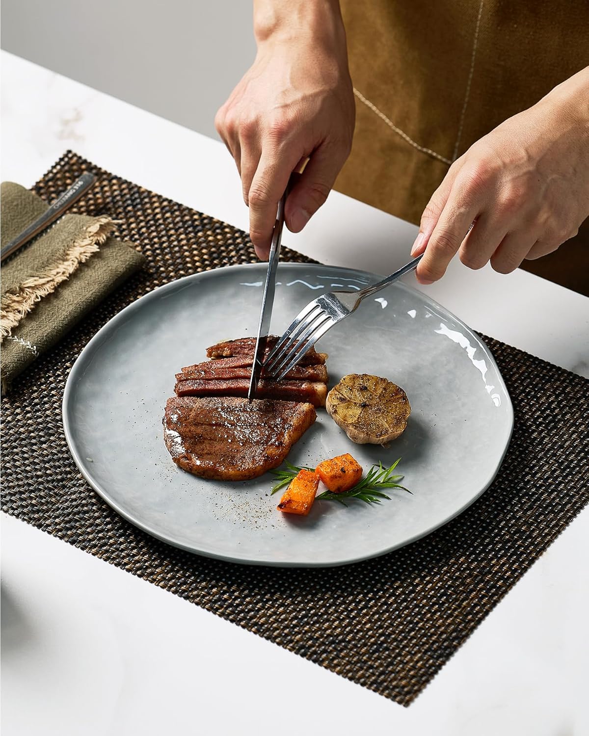 - ăWhat Will You ReceiveăIdeal for large families, couples, or individuals, 16 pieces grey dishware set includes: 4 x 10.7" Large dinner plates, 4 x 8.7" salad plates, 4 x 8" Pasta bowl and 4 x 6" cereal bowls, perfect for daily meals, gatherings, and special occasions.