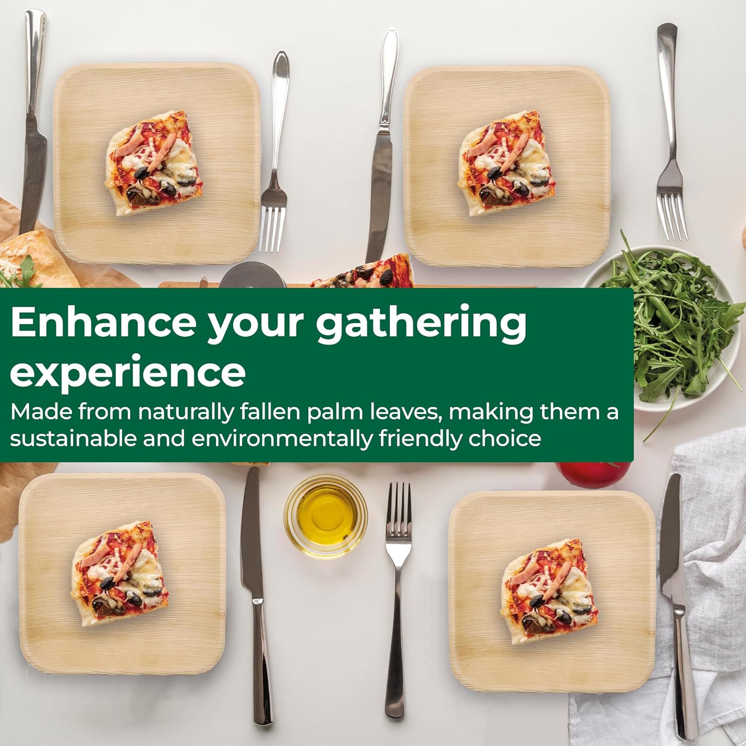 Palm Leaf Disposable Plates - Bamboo Plates Disposable 7 Inch Square (50pc) - 100% Compostable & Biodegradable Plastic-Free Plates - Heavy-Duty, Party Dinnerware Set - Microwave & Oven Safe