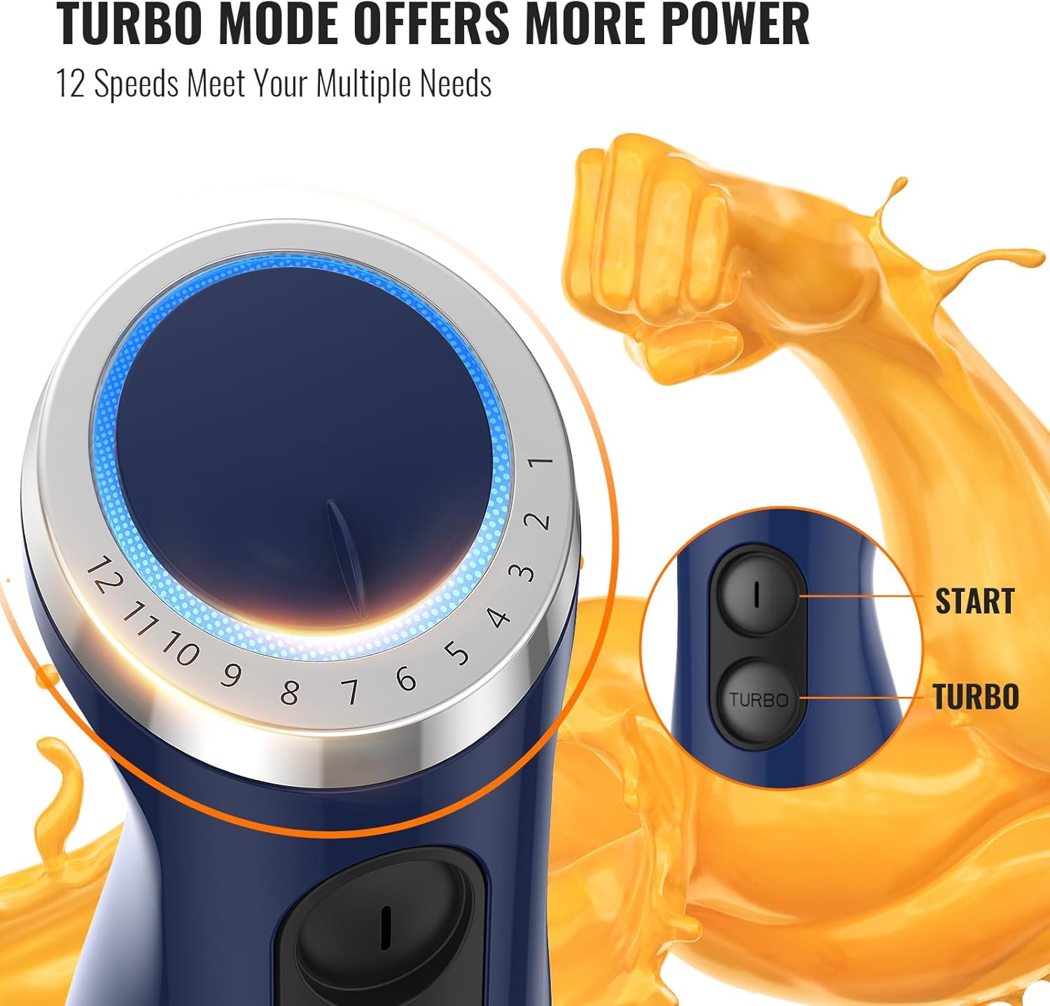 - 12 Speed & Turbo Boost β The immersion blender comes with 12 adjustable speed and Turbo boost,will meet your multiple needs to make smoothies,soups,whip cream,and much more.With the Turbo Button for maximum speed,you can chop meat and nuts easily in seconds.