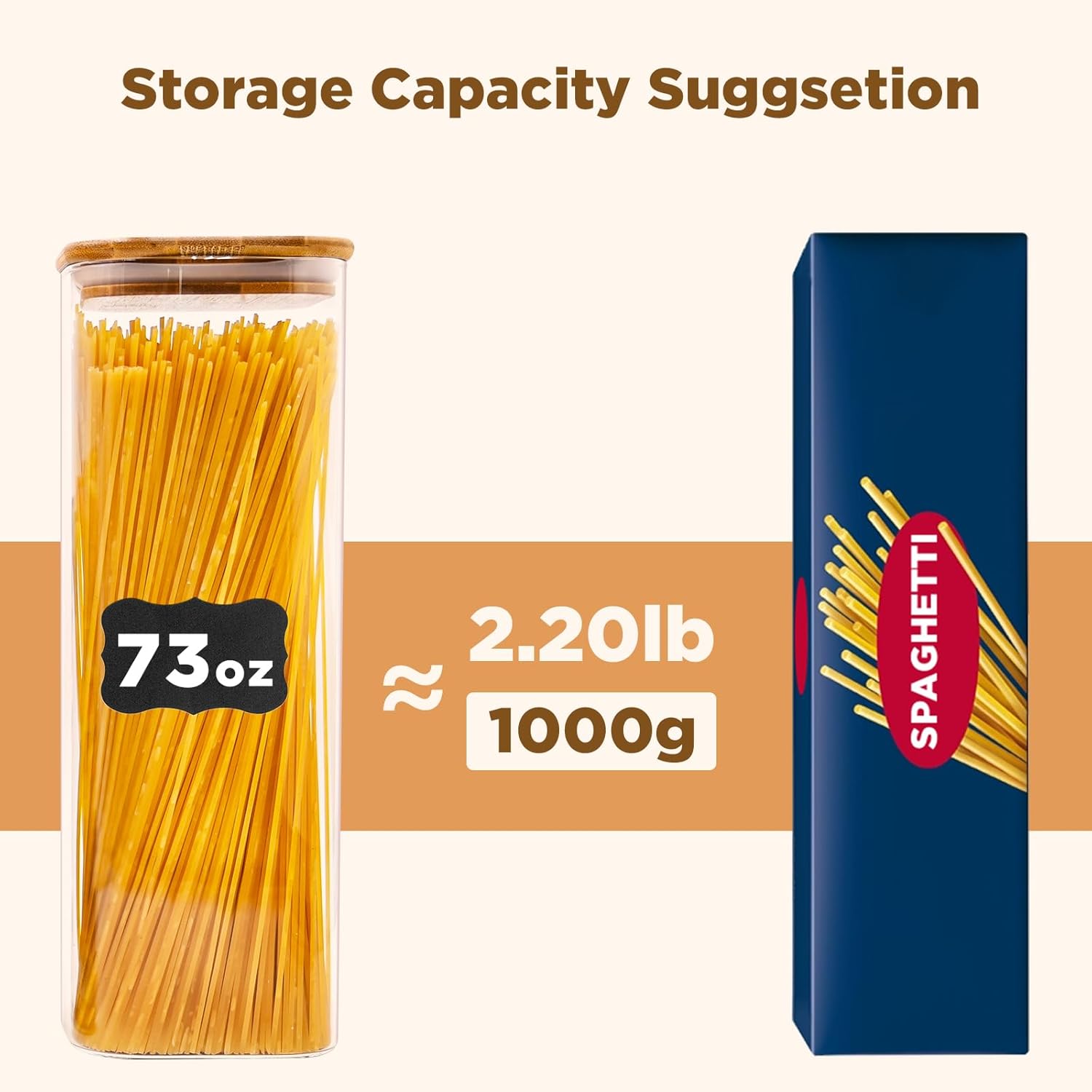 - [Product details] Square glass storage jar height:11.26in. Diameter:3.9in. Capacity:73oz(2070ml). Package contains: 3pcs. 3 pieces glass pantry storage containers with same volume meet you various storage need.