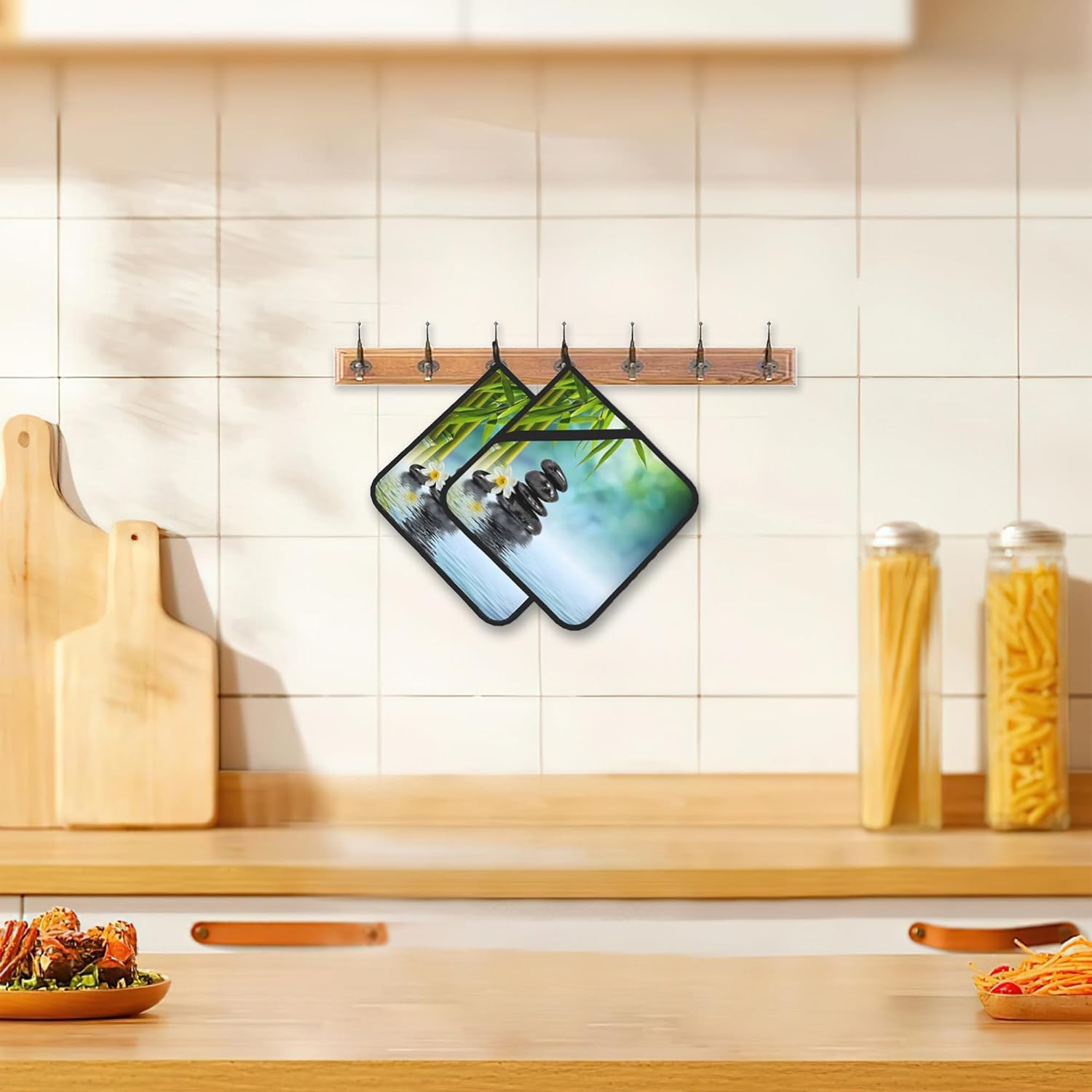 Zen Spa Pot Holder Set of 2,Green Flower Kitchen Heat Resistant Potholder for Women Men BBQ Cooking Baking