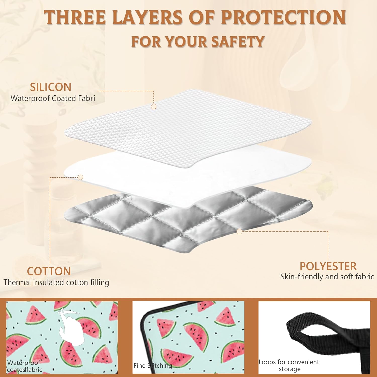 Summer Watermelon Pot Holder Set of 2,Kitchen Heat Resistant Potholder for Women Men BBQ Cooking Baking