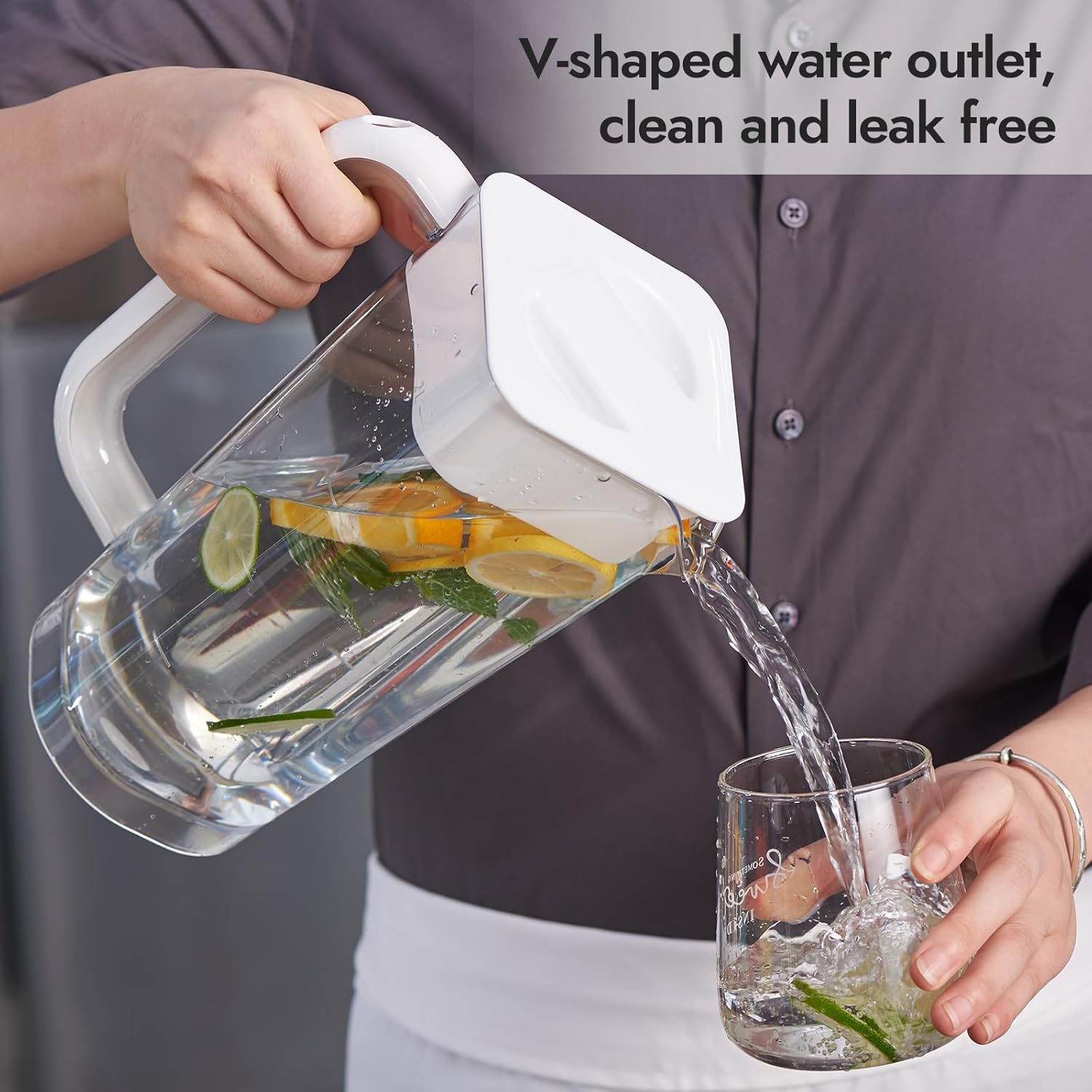 - Elegant Design: The CURTA Pitchers is elegantly designed to complement all kitchen and dining items, and our slanted quadrilateral design and Clear material plastic pitchers will add chic modern style.The meticulously designed spout ensures drip-free pouring, while the broad, ergonomic handle comfortably fits both large and small hands, allowing for easy handling and control.
