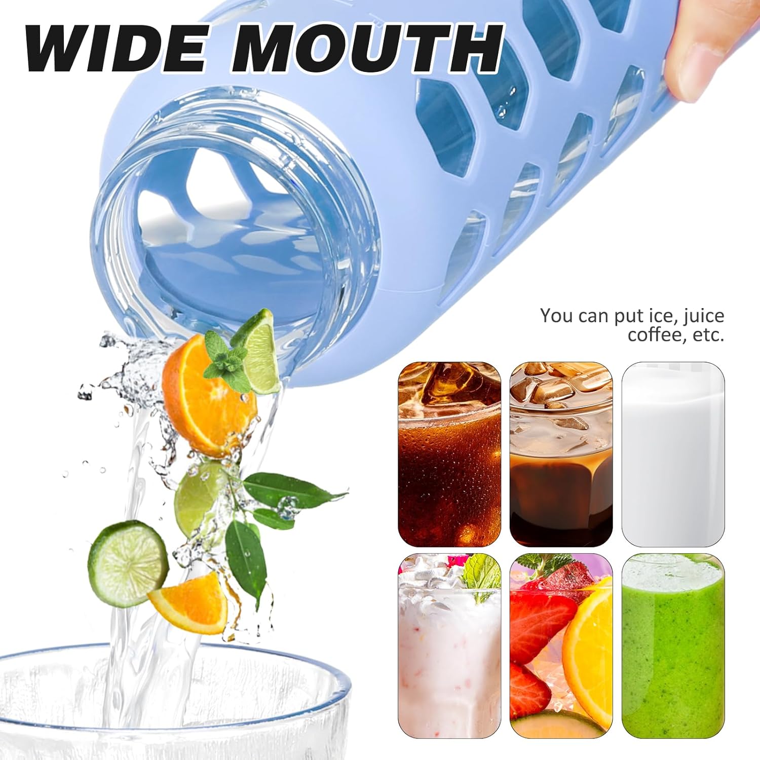 - COLD DRINK:Waterbottle made of premuim borosilicate glass which is sturdy and thermal resistance. It can withstand high and low temperatures without shattering or cracking, which makes the glass waterbottle suitable for both hot and cold drinks.