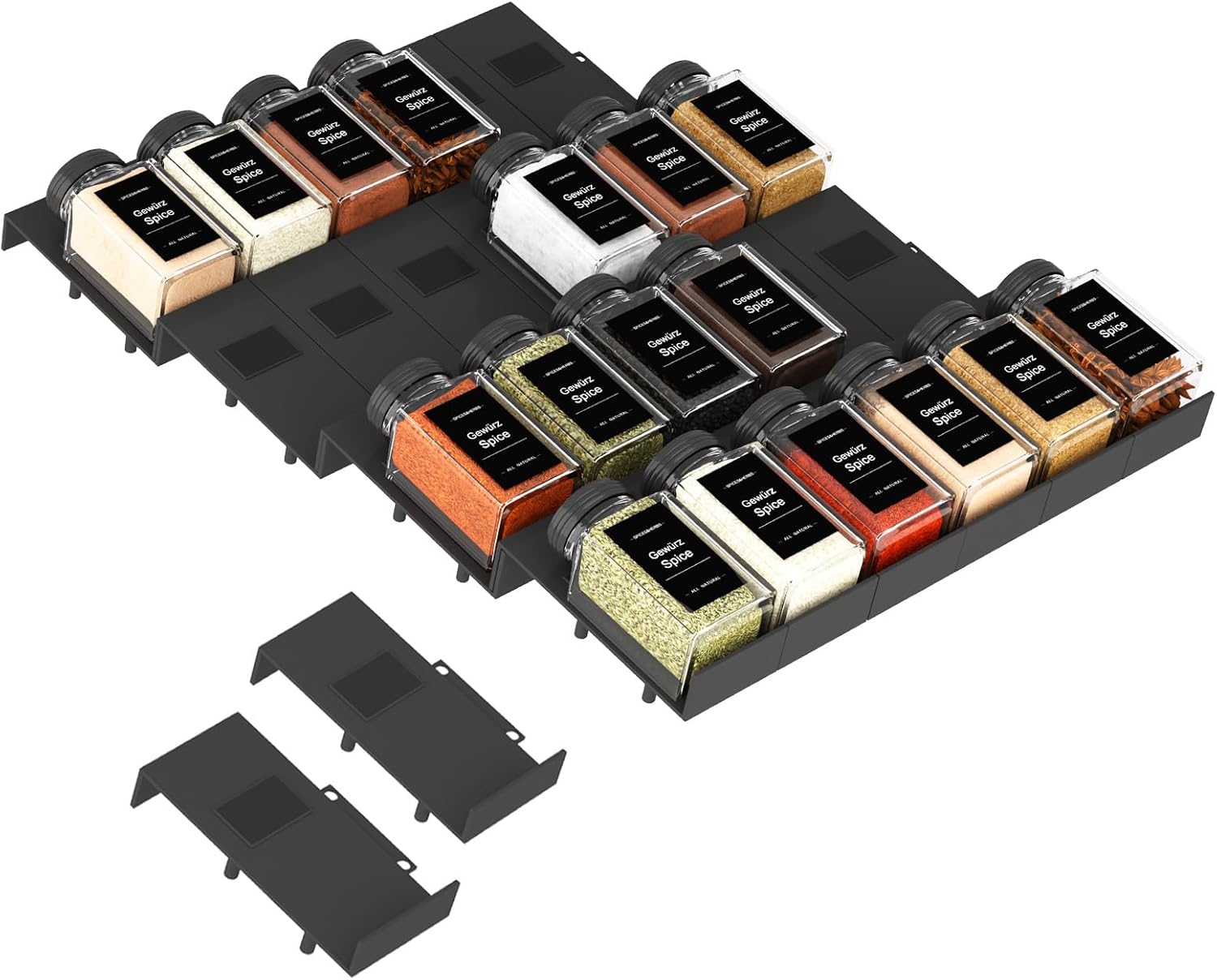 - Customizable Layout: The interlocking design allows you to customize the horizontal arrangement of the spice inserts, helping you make the most of your drawer space. Easily adjust the number of inserts to fit your specific needs and preferences.