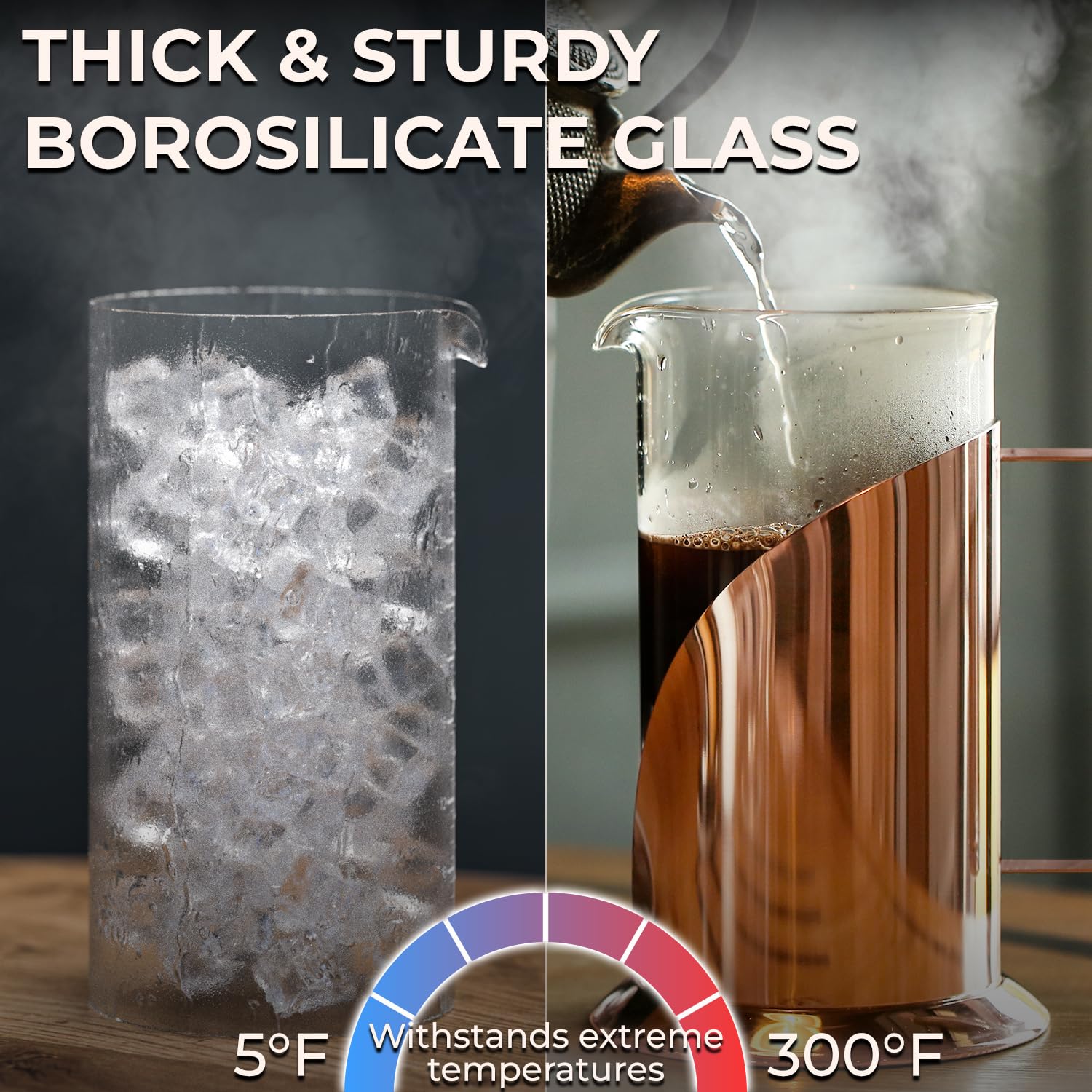 - Durable and Stylish Design: Constructed with borosilicate glass and stainless steel, this French press features a robust handle for durability and a sleek look, making it a stylish addition to your kitchen
