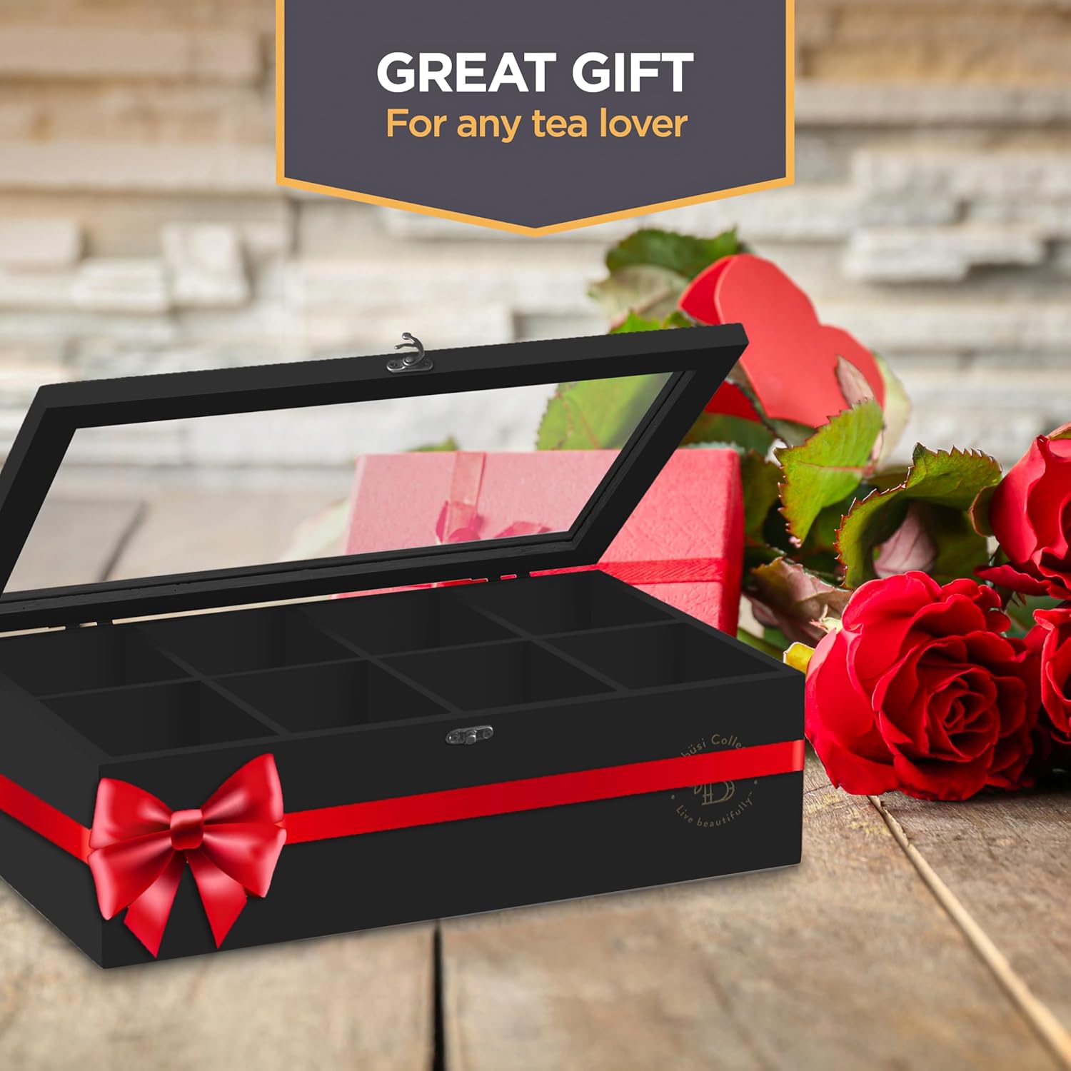 - The Perfect Gift: Searching for memorable Christmas gifts? Our bamboo tea organizer stands out as the ideal gift, especially for tea lovers gift ideas and those who appreciate a touch of elegance in their kitchen. As a multi-functional tea chest, it's not just a tea bag organizer; it's a statement of style and utility.