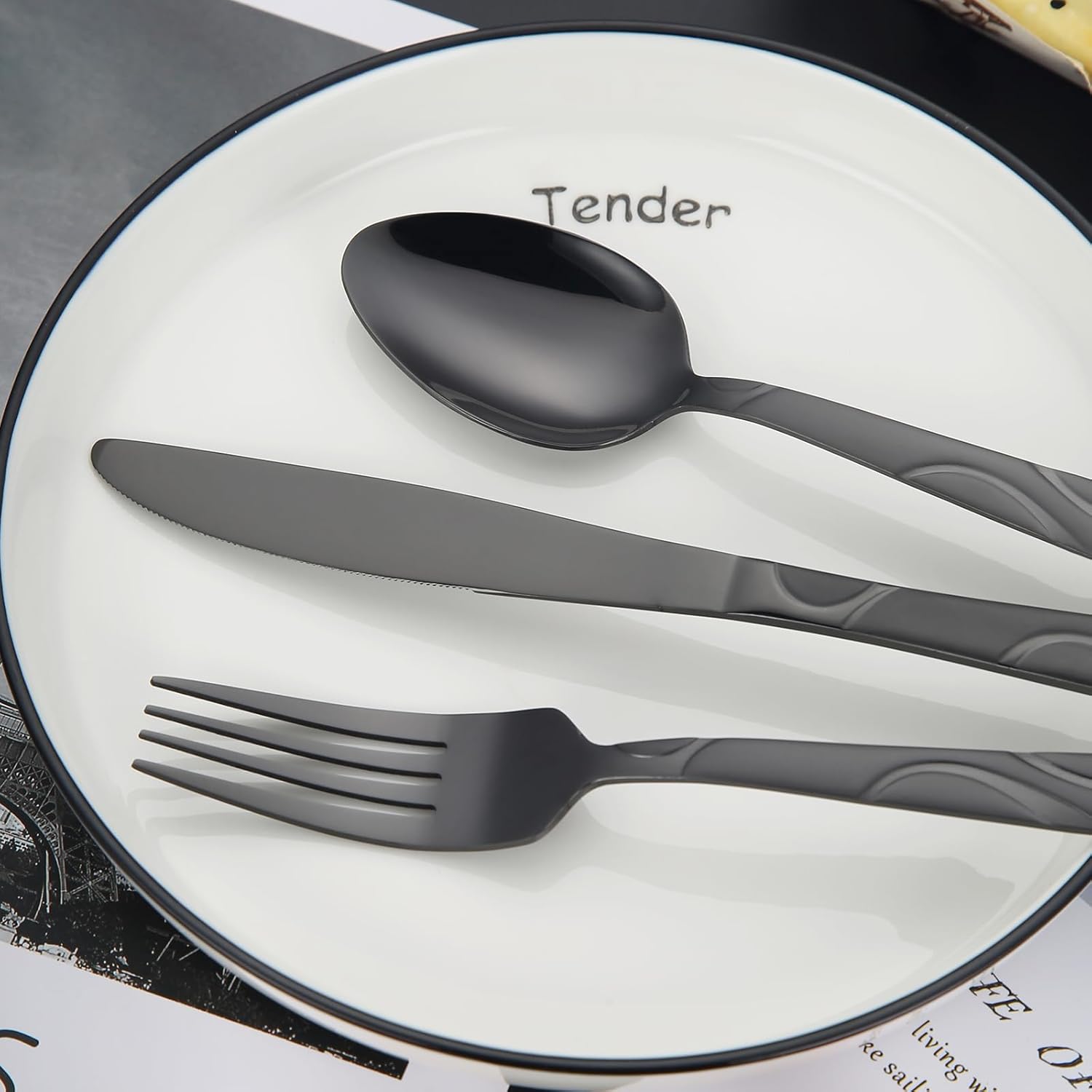 - 30 Pieces for Complete Service: This Black Silverware Set includes service for 6, featuring 6 dinner forks, 6 dinner spoons, 6 salad forks, and 6 knives. Each piece in this stainless steel flatware set is designed to meet all your dining needs, whether youβre hosting a dinner party or enjoying a family meal.