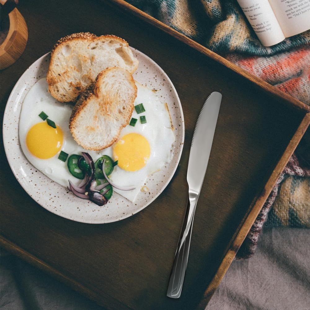 - EXCELLENT SHAPE AND CLASSIC DESIGN : The classic elegant Dinner Knife features a beautiful Round Edge handle. Integrated stamping molding, not easy to age, ergonomic design, comfortable grip Sharp Teeth, uniform and clear sawtooth, powerful cutting. Thanks to its firm construction and delicate curves to add more elegance and class to your table, elevate your everyday meals to the next level.