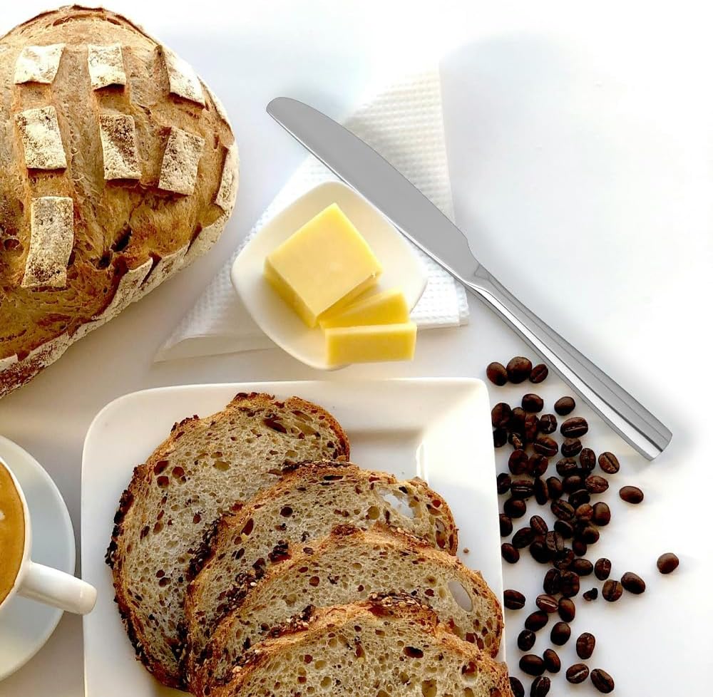 - HIGH QUALITY : SANTUO Direct 12-piece Steel Dinner Knives Set are made of top food grade stainless steel. seamlessly add more elegance and class to your table. mirror polish makes these modern silverware always keep shining, They are resistant to rust, corrosion and are dishwasher safe.