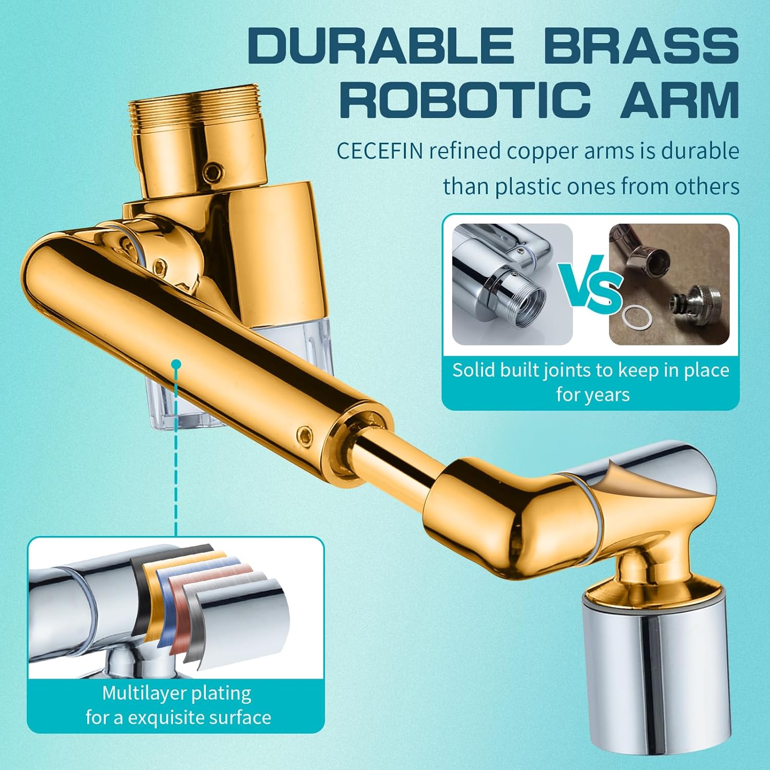 - 【Premium Brass & ABS Material】CECEFIN faucet extender is made of superior brass connectors & arm, ABS aerator body, rotating faucet aerator has smooth surface and chrome-plated, with high corrosion resistance and oxidation resistance, which can withstand water pressure changes and daily rust, refined copper arms is durable than plastic faucet extender from others.