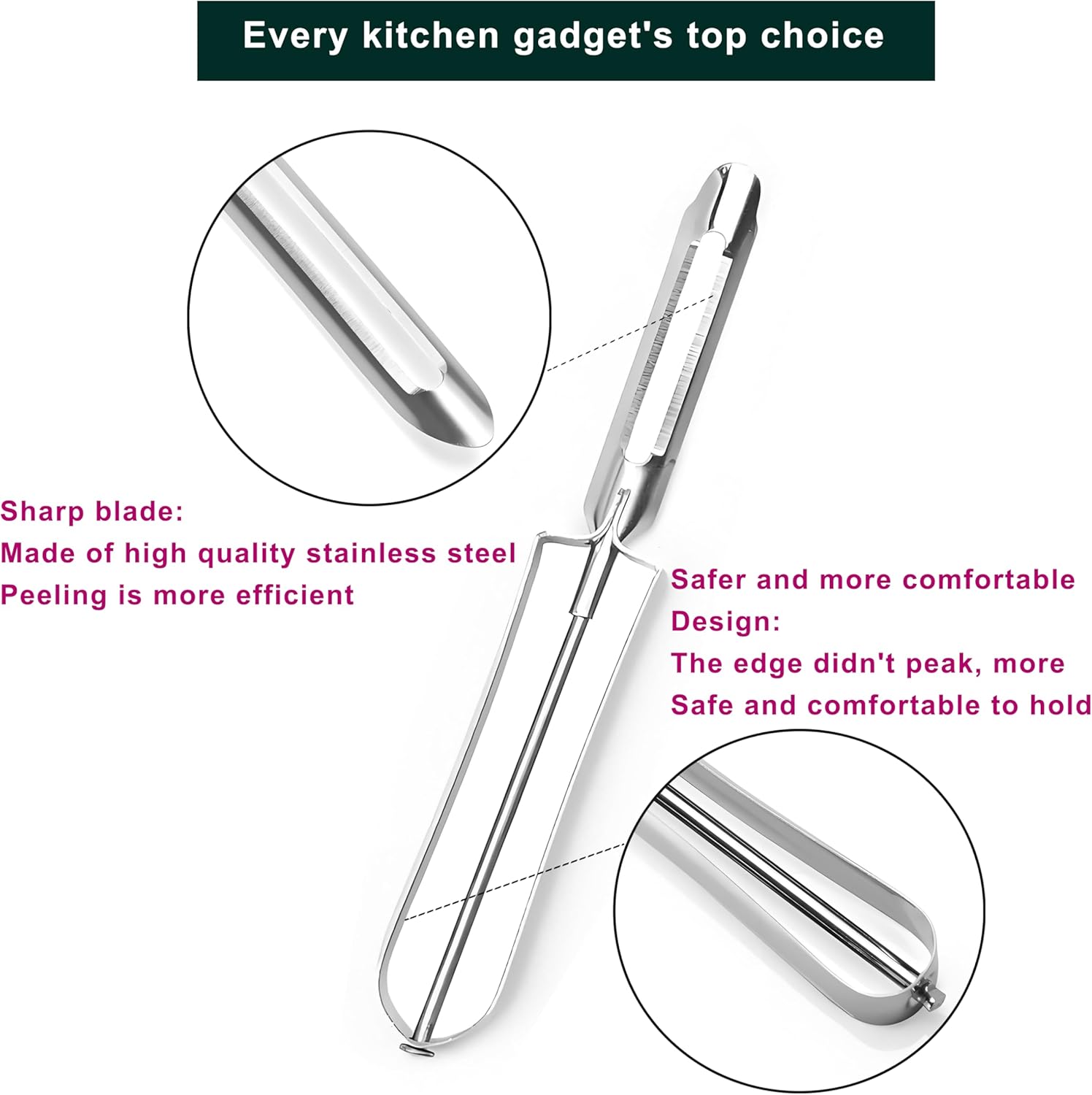 - Features: Safer and more comfortable vegetable fruit peeler, slim, ergonomic handle fits in the palm of your hand, perfect for left- and right-handed users, with a secure grip you have complete control over your cooking tool, maximum Maximizing your safety and confidence, it's the first choice for every kitchen gadget, Just like Mom's old steel peelers