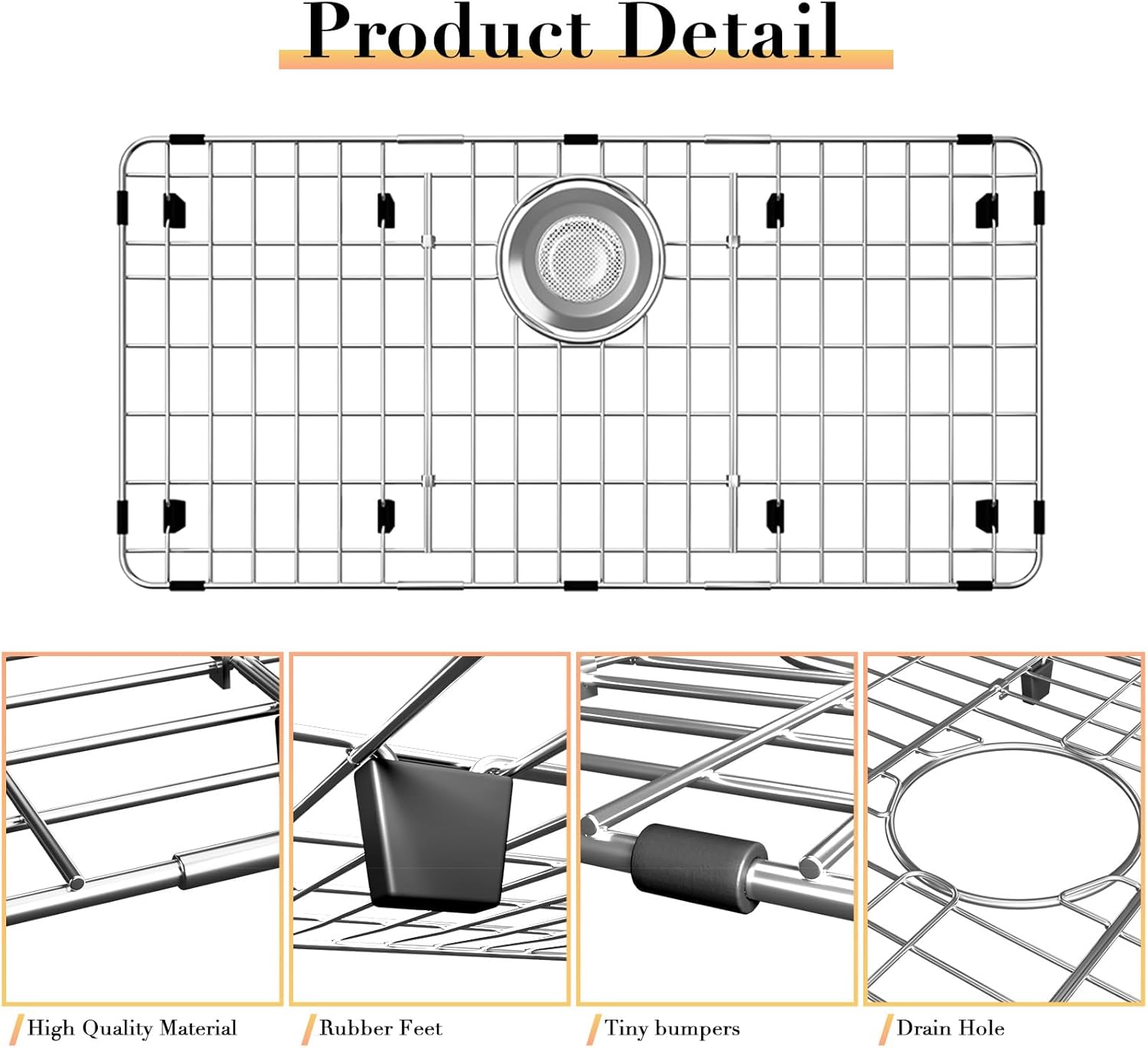 - Product Design: The stainless steel sink bottom protector effectively protects the sink from garbage inflow. An open grid design allows water to flow freely from under plates and cutlery to improve sink drainage