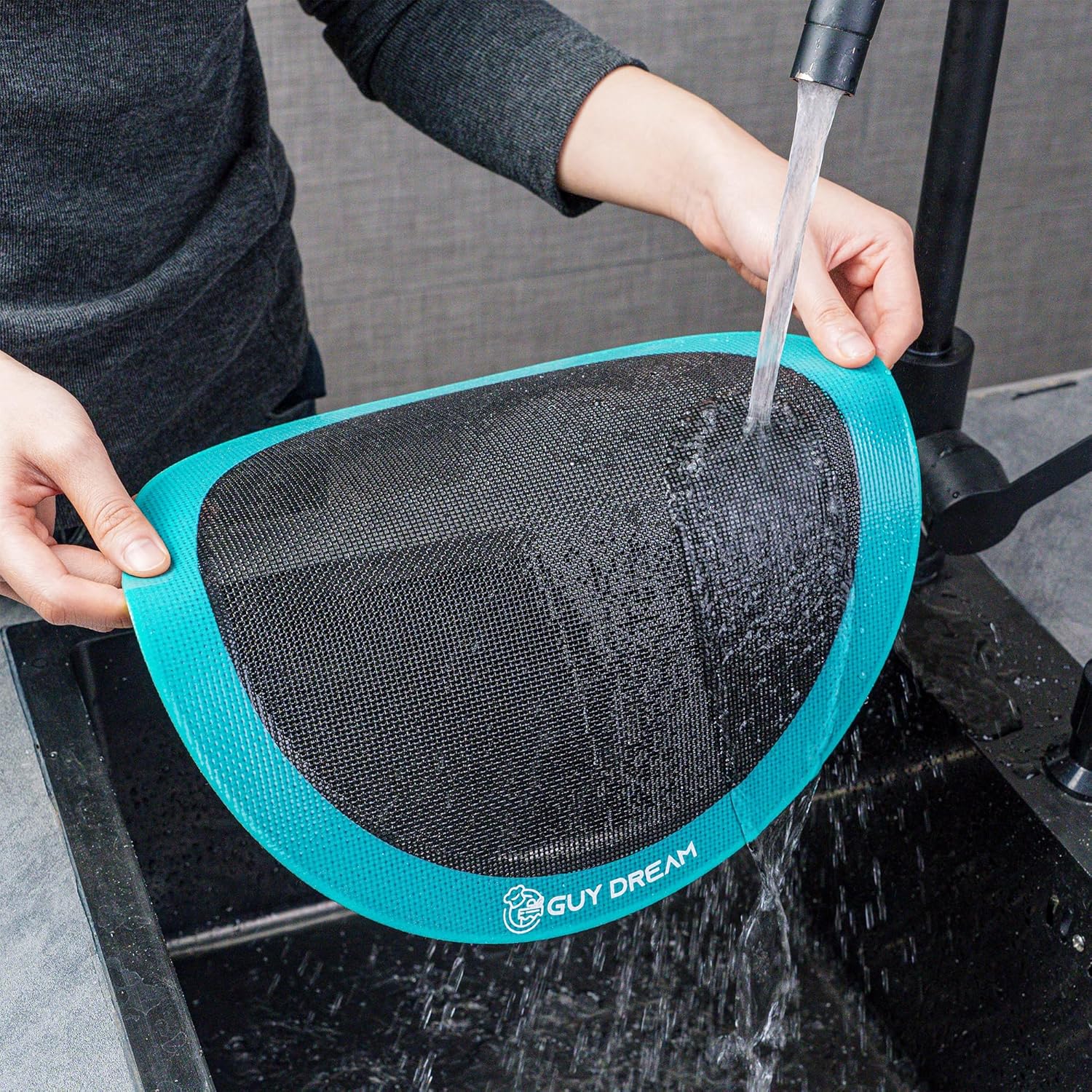 - ** Easy to Clean, Versatile & Heat-Resistant**These non-stick silicone mats are incredibly easy to clean, with food particles and grease washing away effortlessly. The perforated design also helps with quick and simple cleanup. Suitable for use in ovens, air fryers, and convection ovens, these mats can withstand heat up to 480°F (250°C), making them versatile for a variety of cooking appliances. Whether you’re baking, roasting, or air frying, the GUYDREMAT mat offers even cooking, faster results, and long-lasting durability.