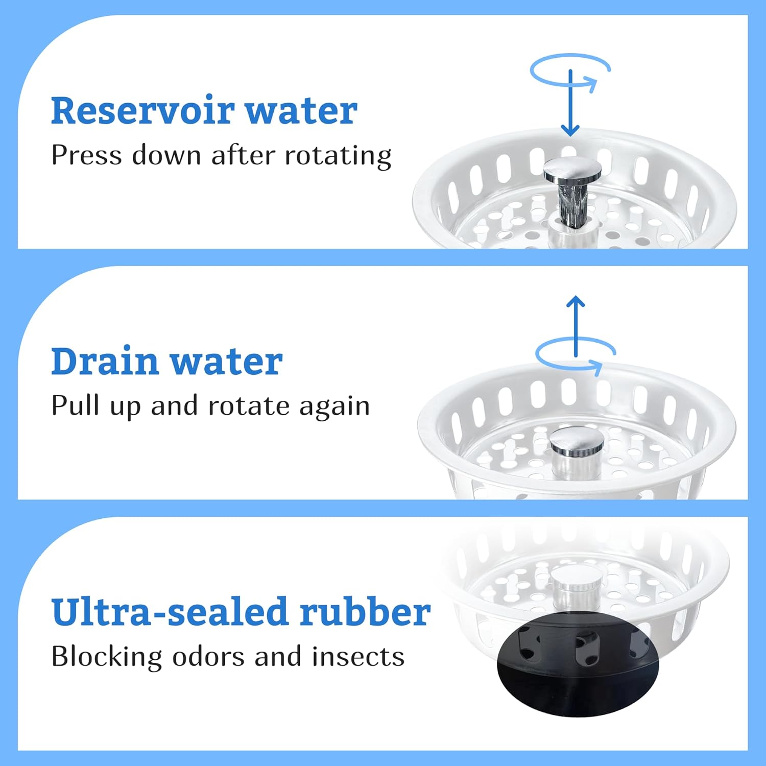 - EASY TO USE: Post style design, turn post to restrict flow of draining water.