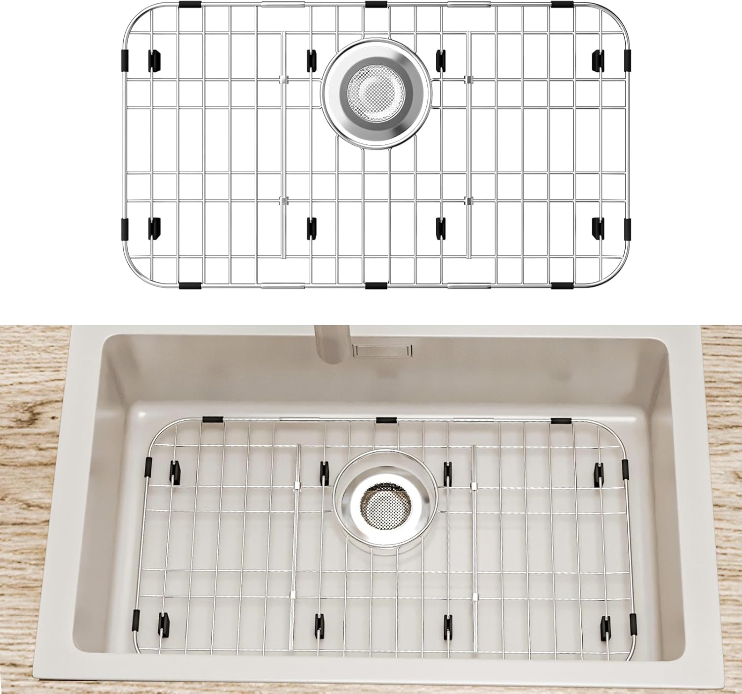 - Easy to Clean: Metal sink protectors for kitchen sink can be cleaned in the dishwasher or by hand. Simply rinse the rack with water and use it again. Great kitchen sink accessories! Note: The rubber mat must be removed before placing the grid in the dishwasher
