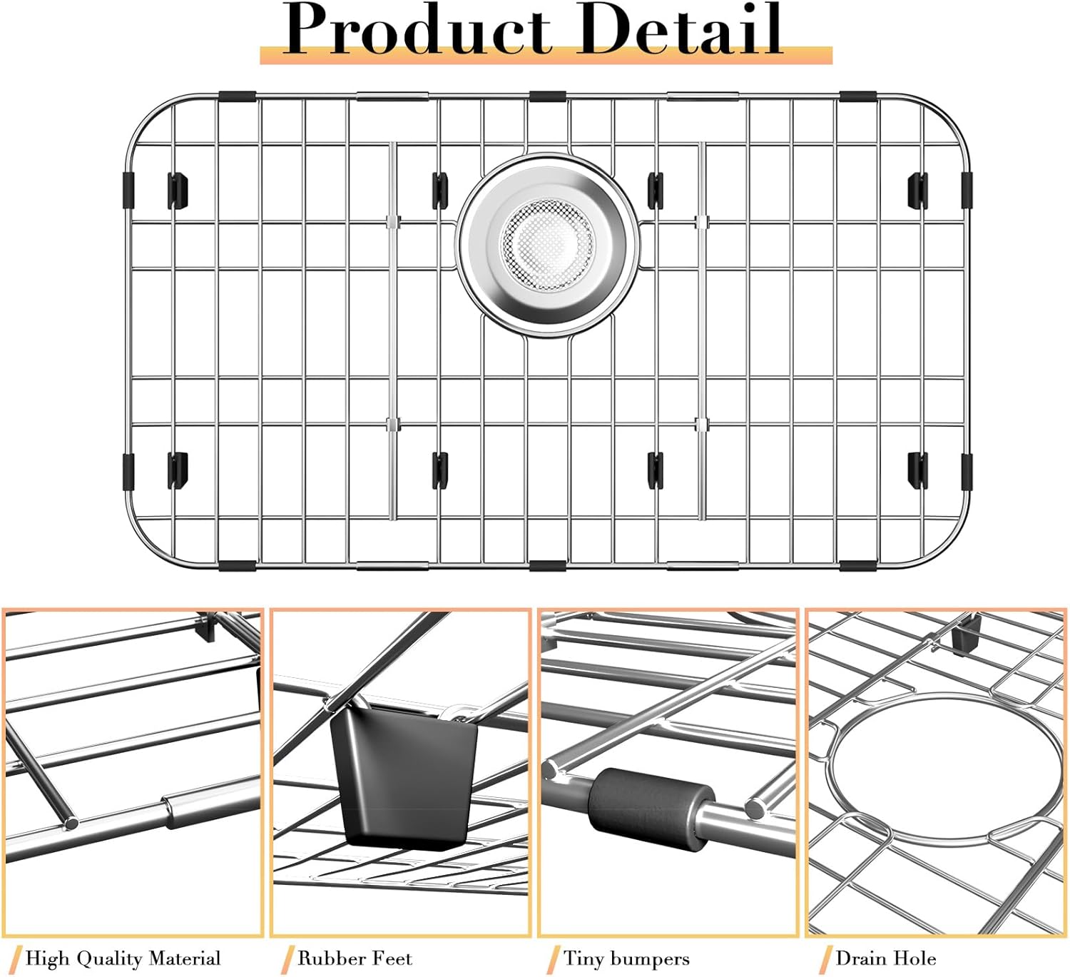 - Product Design: The stainless steel sink bottom protector effectively protects the sink from garbage inflow. An open grid design allows water to flow freely from under plates and cutlery to improve sink drainage