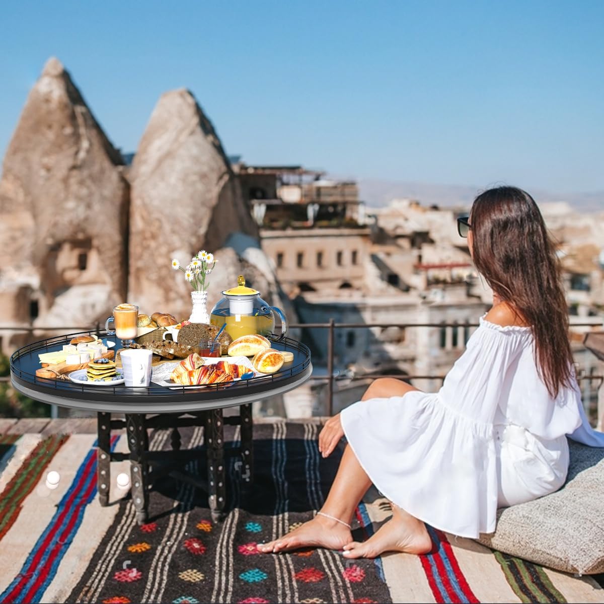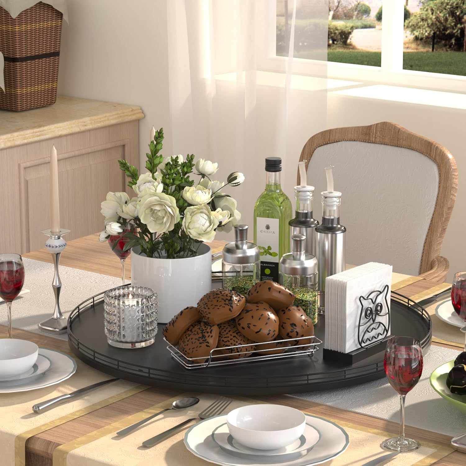 - Multi-Purpose Usage: Perfect for a wide range of occasions and spaces. Whether used as a centerpiece table decorations, a vanity tray in your bathroom, or an organizer on your kitchen, this versatile round tray adapts to your needs in any room