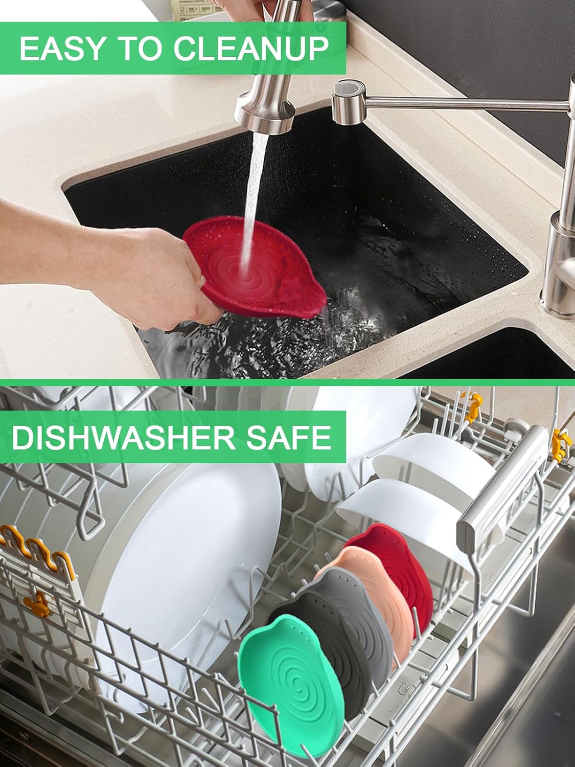 - 【Cleanup with ease & space-saving】This kitchen counter spoon holder can be hand wash and also dishwasher safe, making cleaning a breeze. Stackable spoon rest to maximize kitchen space.