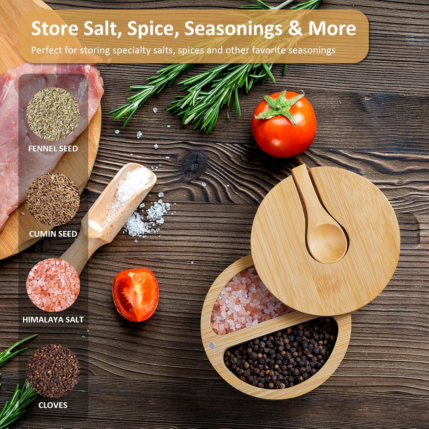 - Bamboo Salt Box: This stylish salt cellar features a swivel lid, making it perfect for keeping your favorite spices easily accessible. It's ideal for storing specialty salts, spices, or even small household items