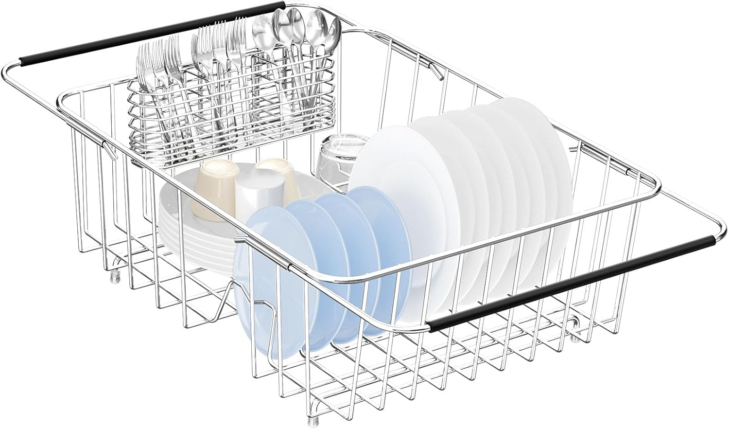 Large Dish Drying Rack in Sink Expandable, Adjustable304 Stainless Steel Metal Dish DrainerRack Organizer with Stainless Steel Utensil Holder Over Inside Sink Counter, Rustproof