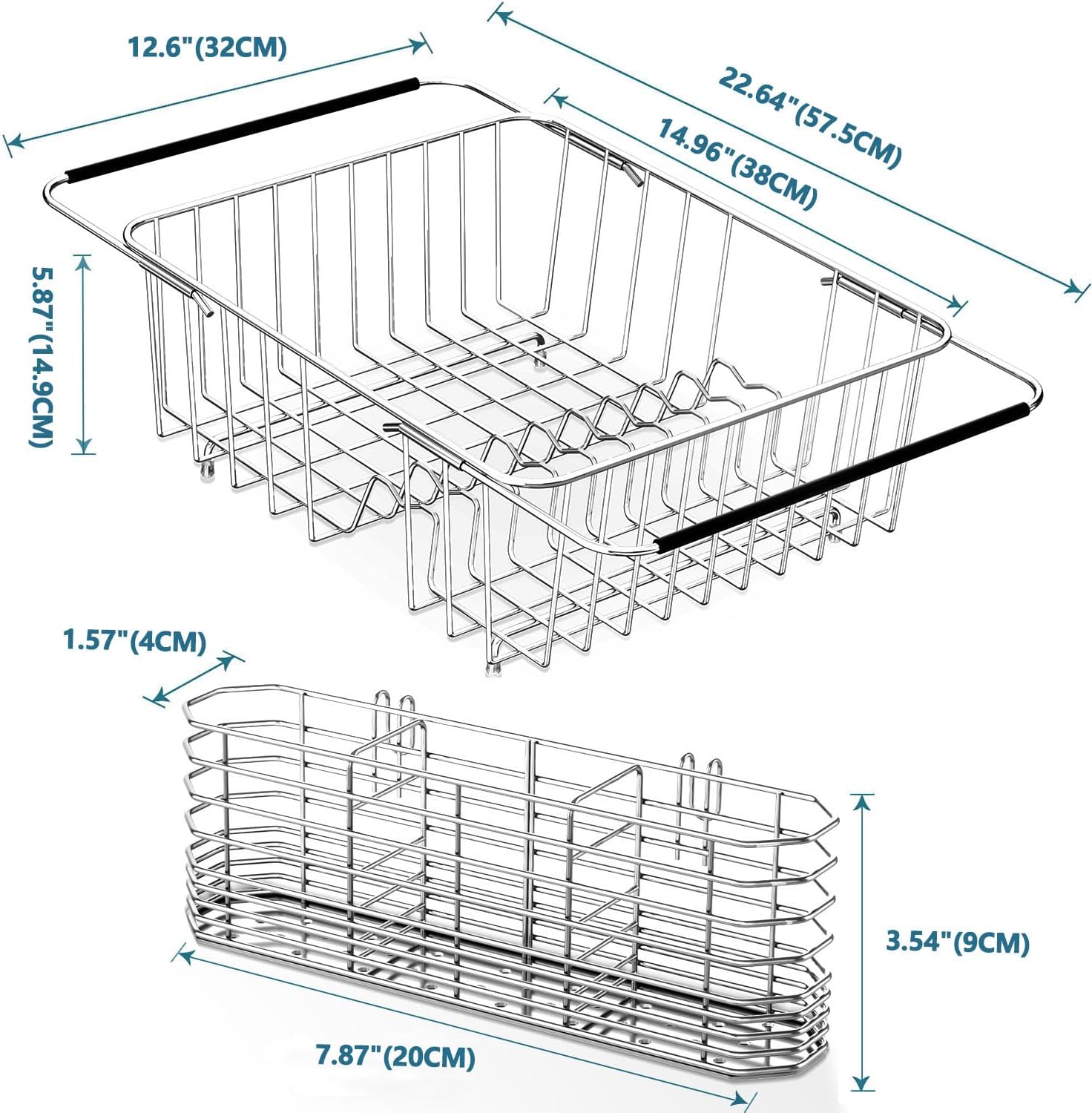 - Suitable for Most Sinks: The dimension of our dish rack is 14.96"(38cm ) X 12.6"(32cm) X 5.87"(14.9cm) , after expandable, 22.64"(57.5cm) X 12.6"(32cm) X 5.87"(14.9cm)