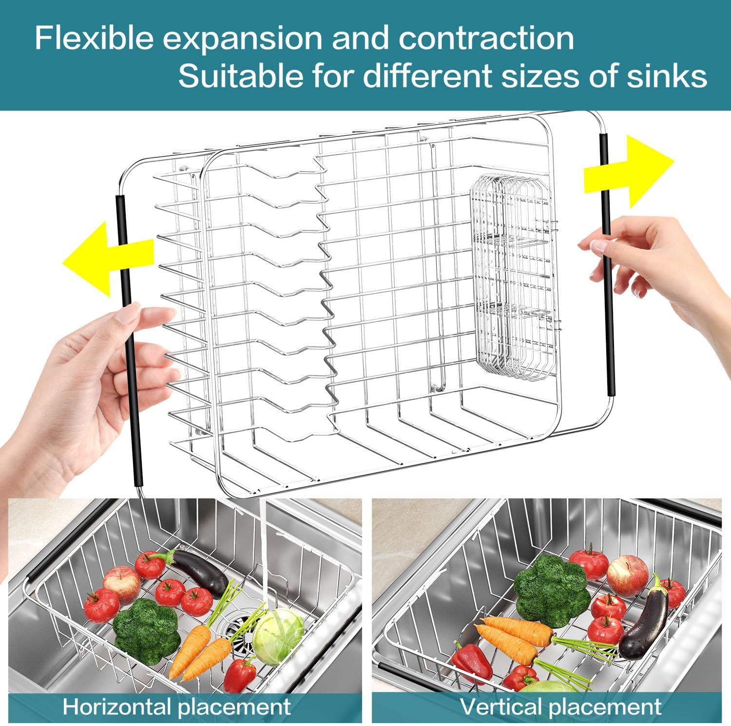 - Non-Slip Expandable Arms: The arms of the drainer rack are adjustable from 14.96" to 22.64", which makes it suitable for most sizes of sinks, and very easy to handle