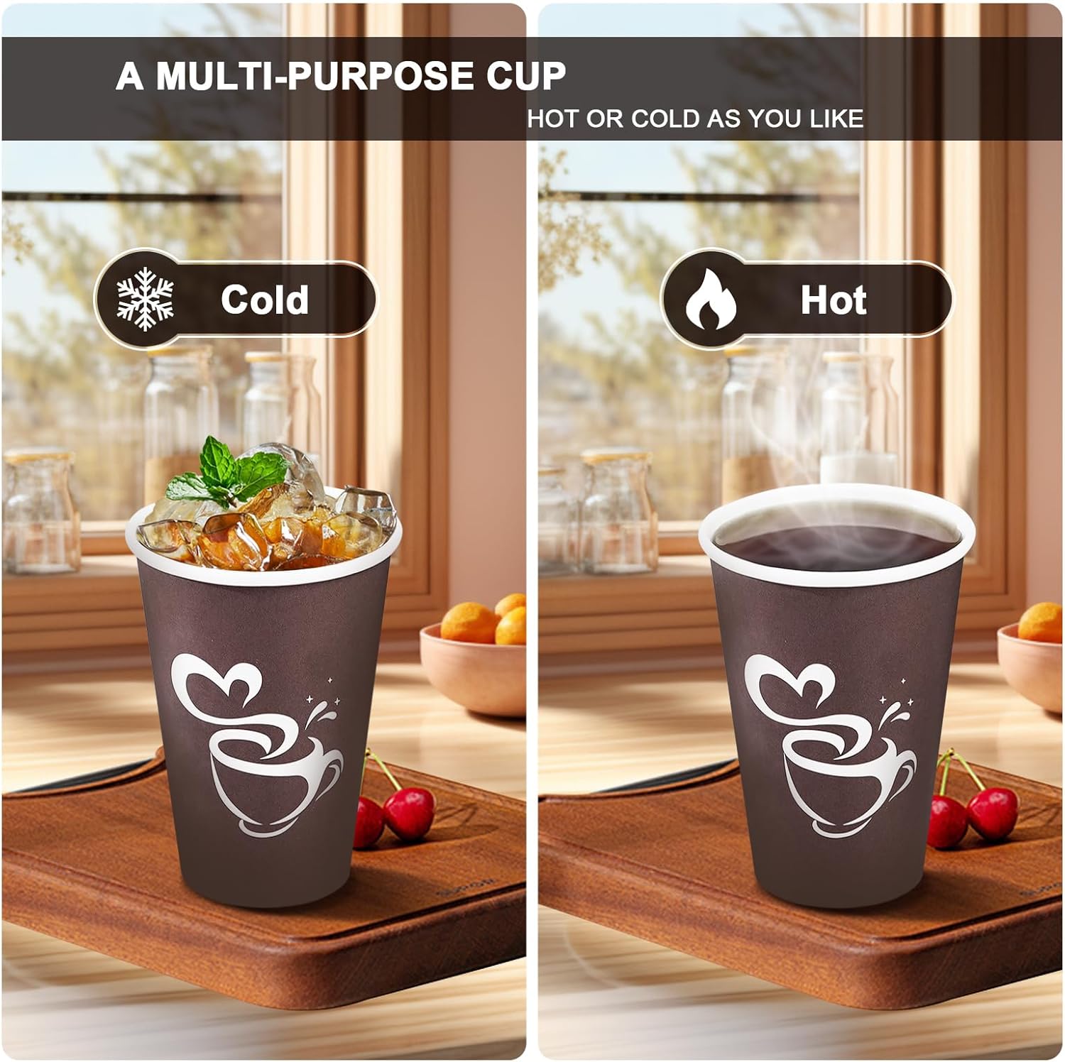 - 【Occasions】Our disposable cups are perfect for hot or cold beverage, such as hot coffee, iced coffee, tea, hot chocolate, juice or water, etc. It is suitable for office, party, business, home, cafe and any other occsasions