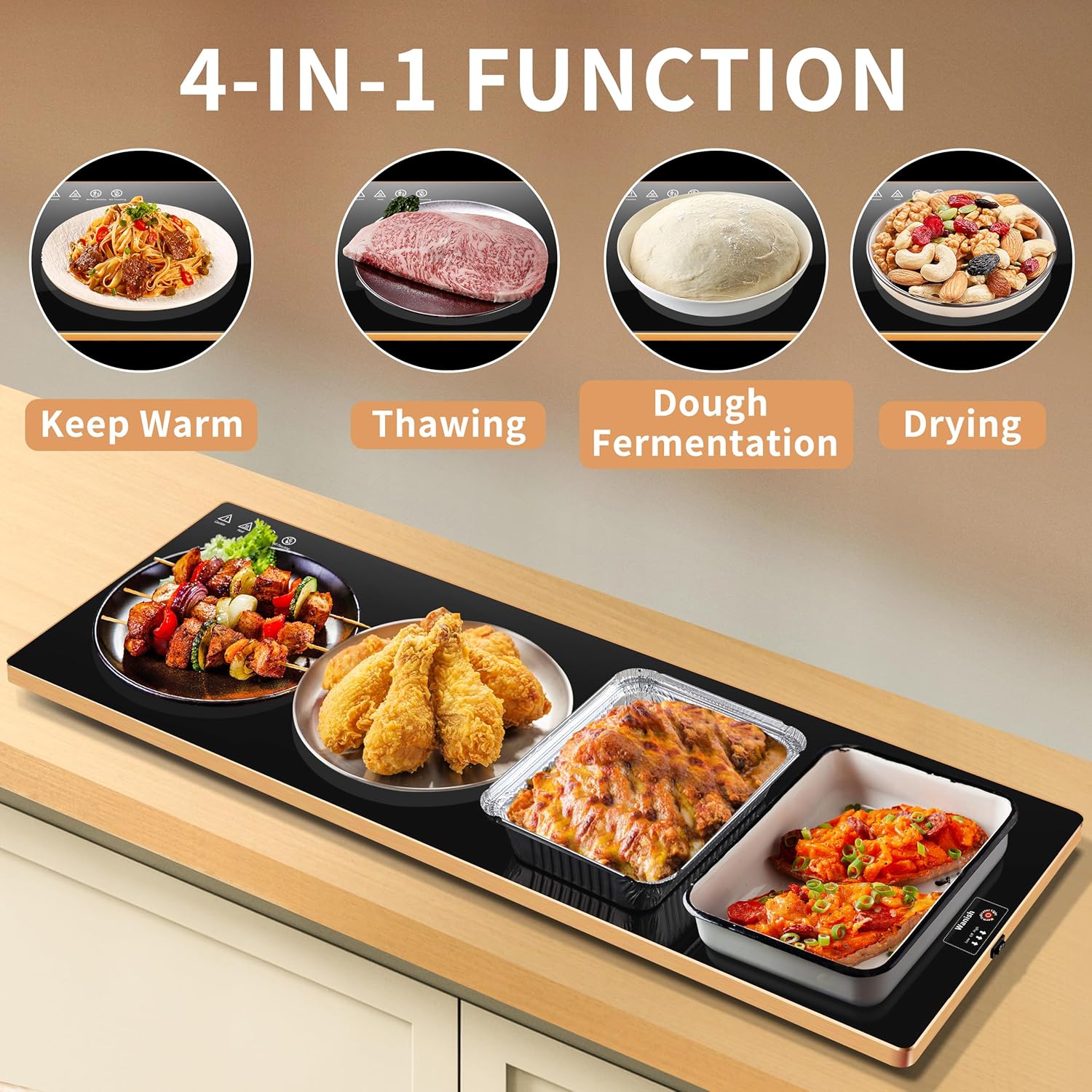 - Safety ECO Mode:Discover the ideal harmony between safety and energy efficiency with our ECO mode, which increases heating efficiency while allowing people to use the food warmer in the safest way. When the temperature reaches 284℉, it will not continue to rise. Our food warmer ensure your meals are at the desired level of comfort, making every day truly comfortable. Believe that our top-notch food warmer will meet your needs.