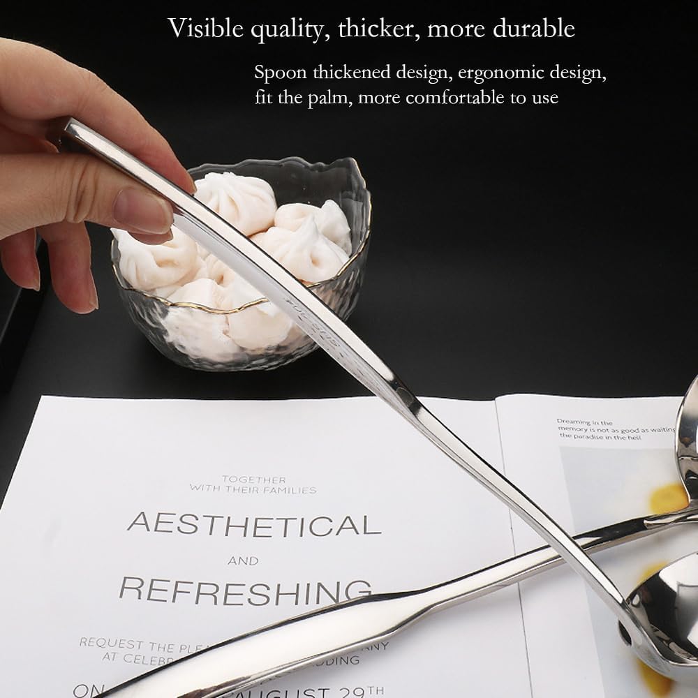 - Ergonomic Design: This stainless steel soup ladle features an elongated handle with a curved, bowl-shaped scoop for comfortable and efficient serving.