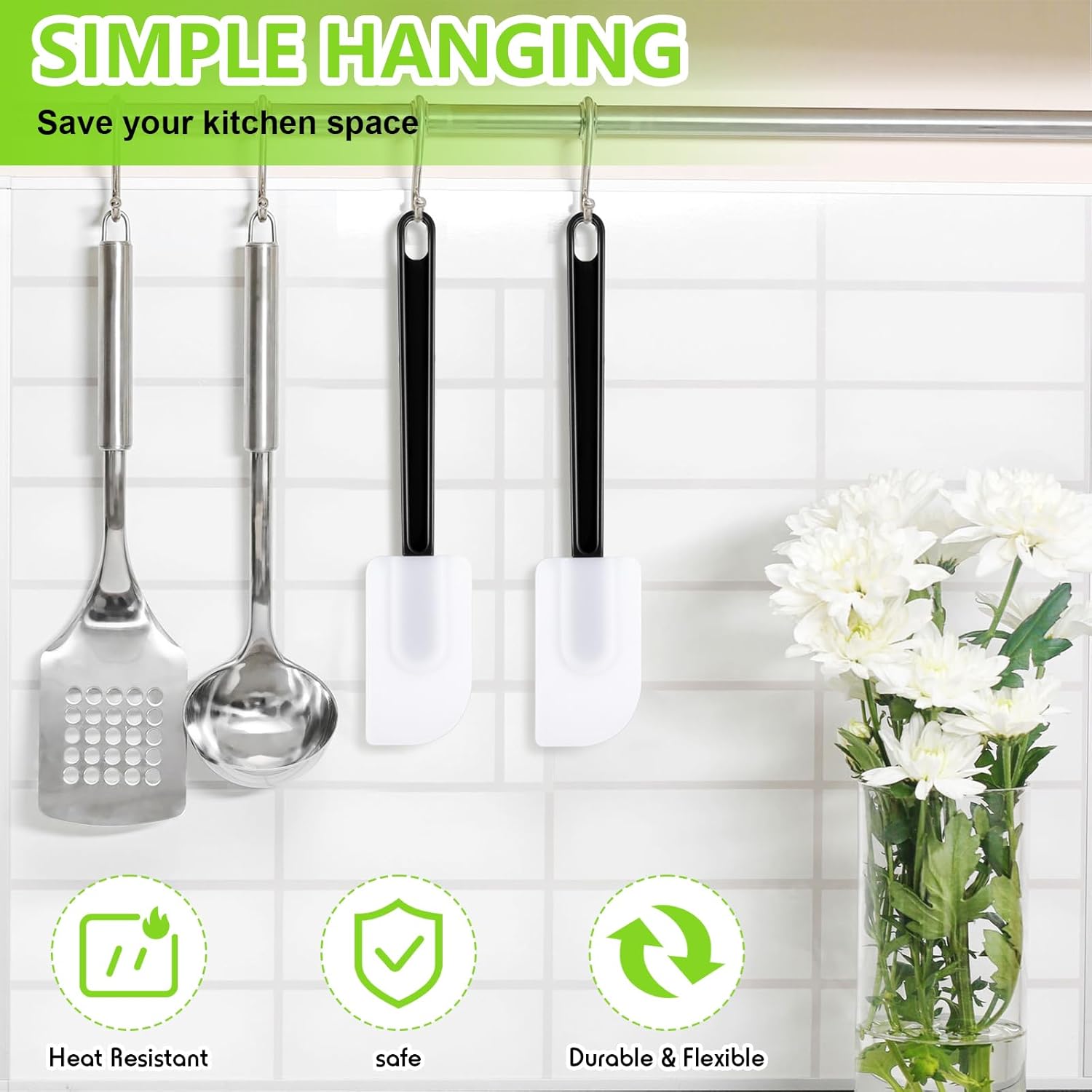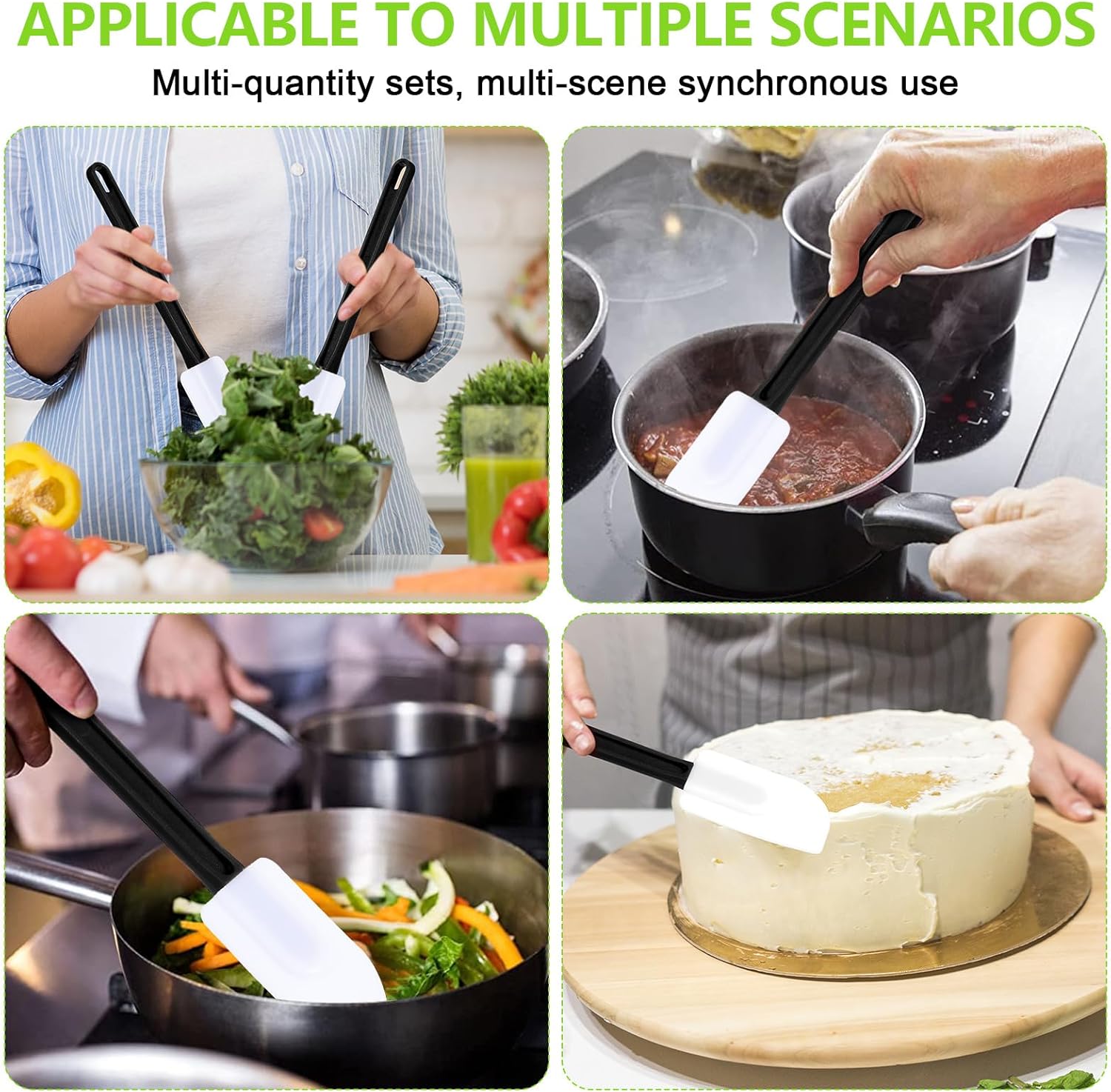 - Safe Material: our spatulas are made of food grade silicone (the head part) and nylon (handle), you will feel safe when using them, meanwhile the rubber spatulas are durable and resistant to 500 degrees Fahrenheit, so they will not melt or emit odor during use and not easy broken