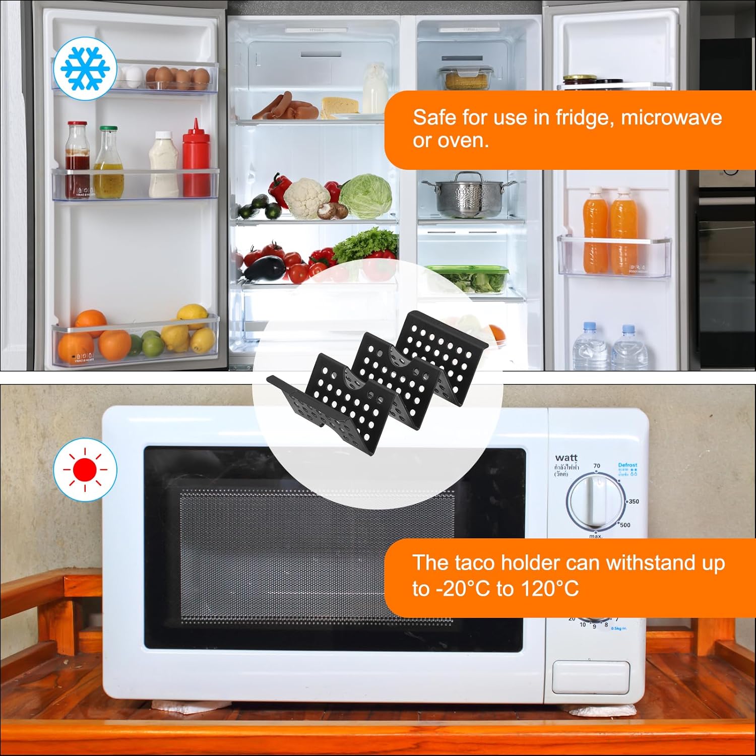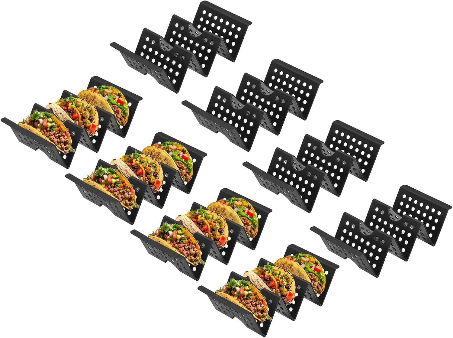 - [Design] - Small holes even distribution on taco stands make taco heat up evenly. The curved design prevents the taco from getting wet or falling off.