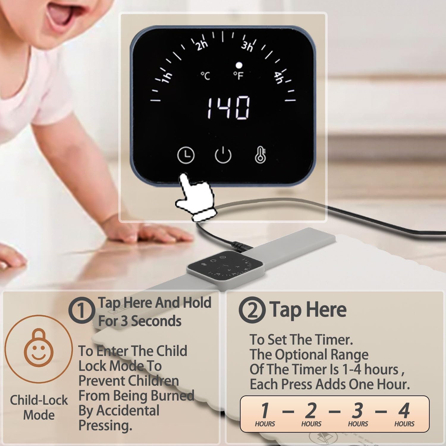 - đź’—4-Timer Settings: 1h-2h-3h-4h. In Addition Child Lock To Prevent Children From Accidentally Touching and Ensures That The Unit Operates Safely Around Children