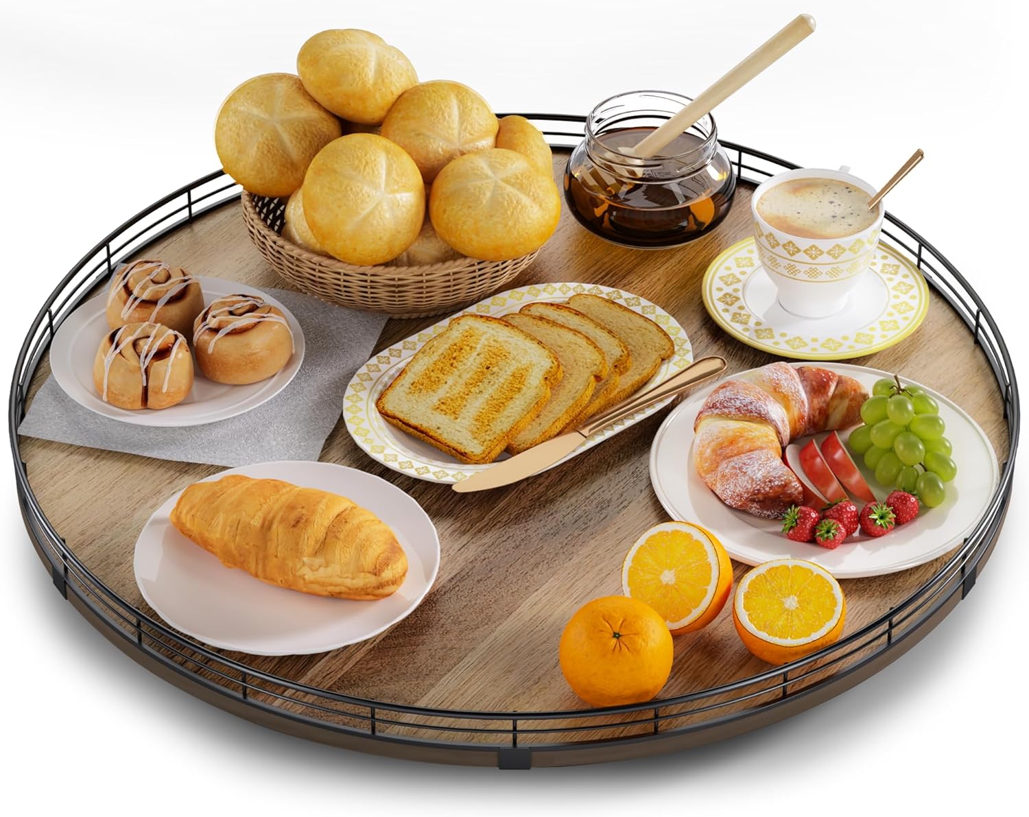 - Exquisite Texture- A turntable to meet your many home needs. Place it in your cabinet to easily store and access food, condiments, cans, medicines and more. As a coffee table tray, perfect for displaying napkin holders, vases, candles. Use it as a bathroom vanity tray to store lotions, perfumes, cosmetics, keep your life organized!