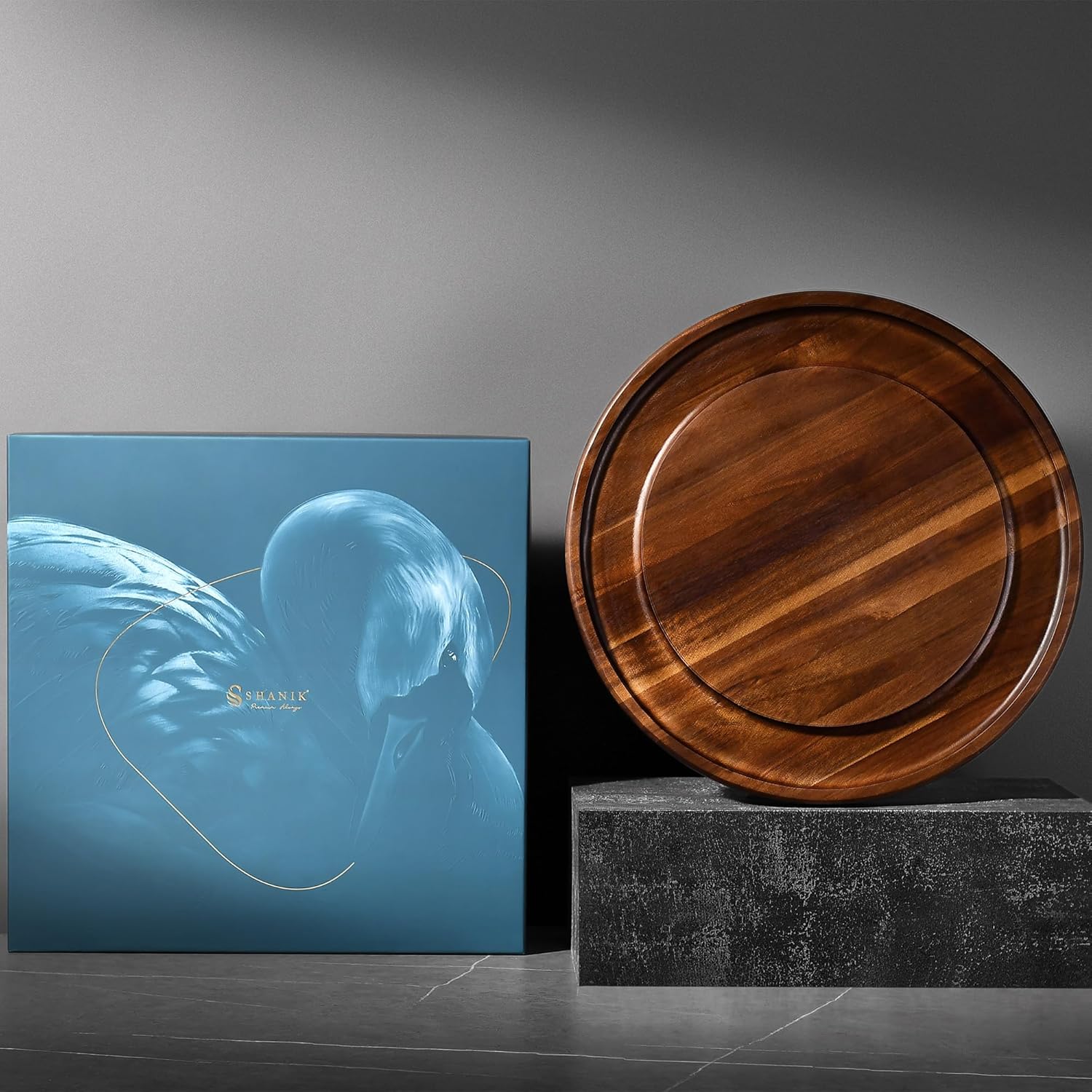 Shanik Acacia Wood Rotating Cheese Board – Lazy Susan Charcuterie Platter for Serving Cheese, Meats, Crackers, and Appetizers
