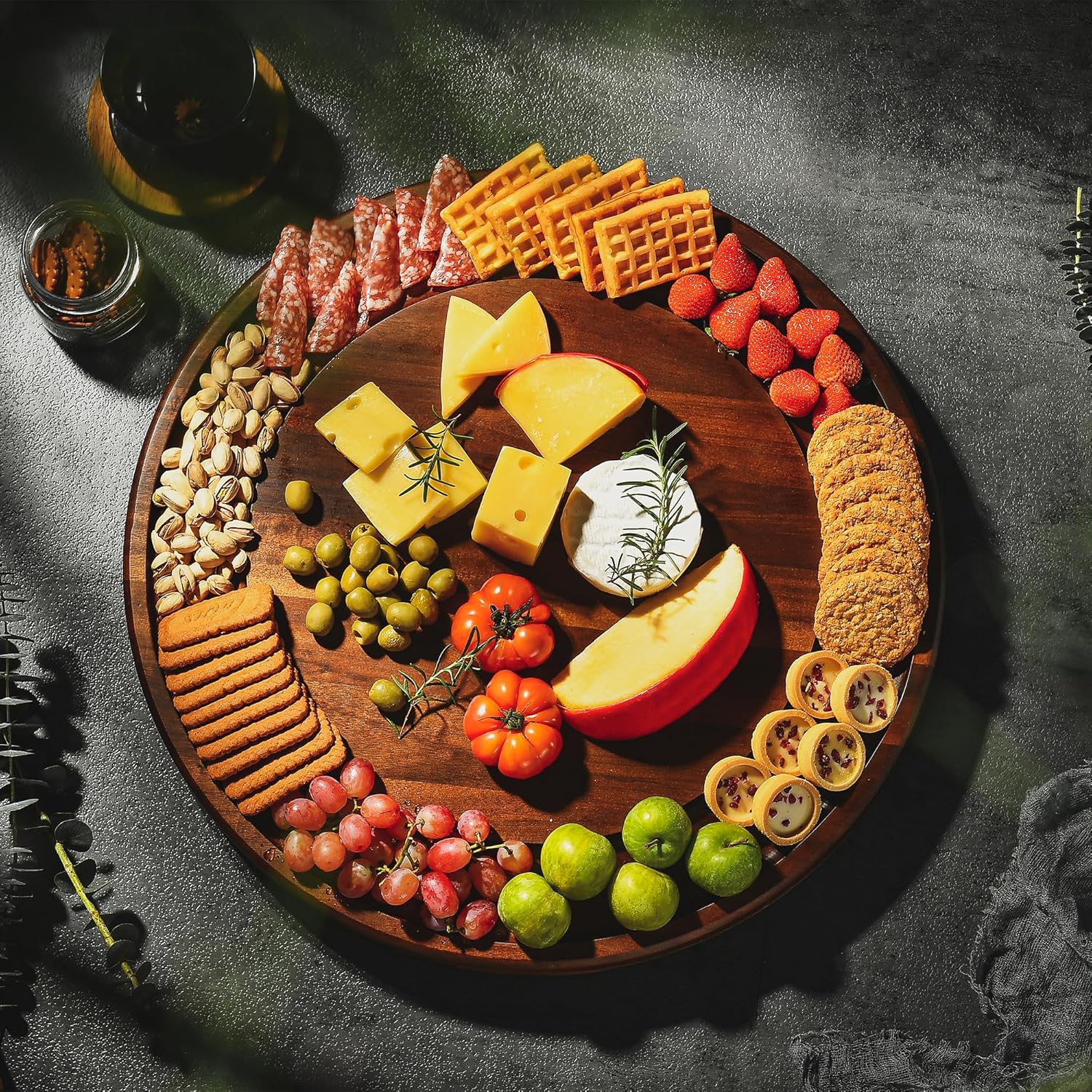 - 360° Rotating Lazy Susan: The smooth rotating design allows easy access to cheese, charcuterie, fruits, and snacks from any angle, making it perfect for sharing during parties and gatherings.