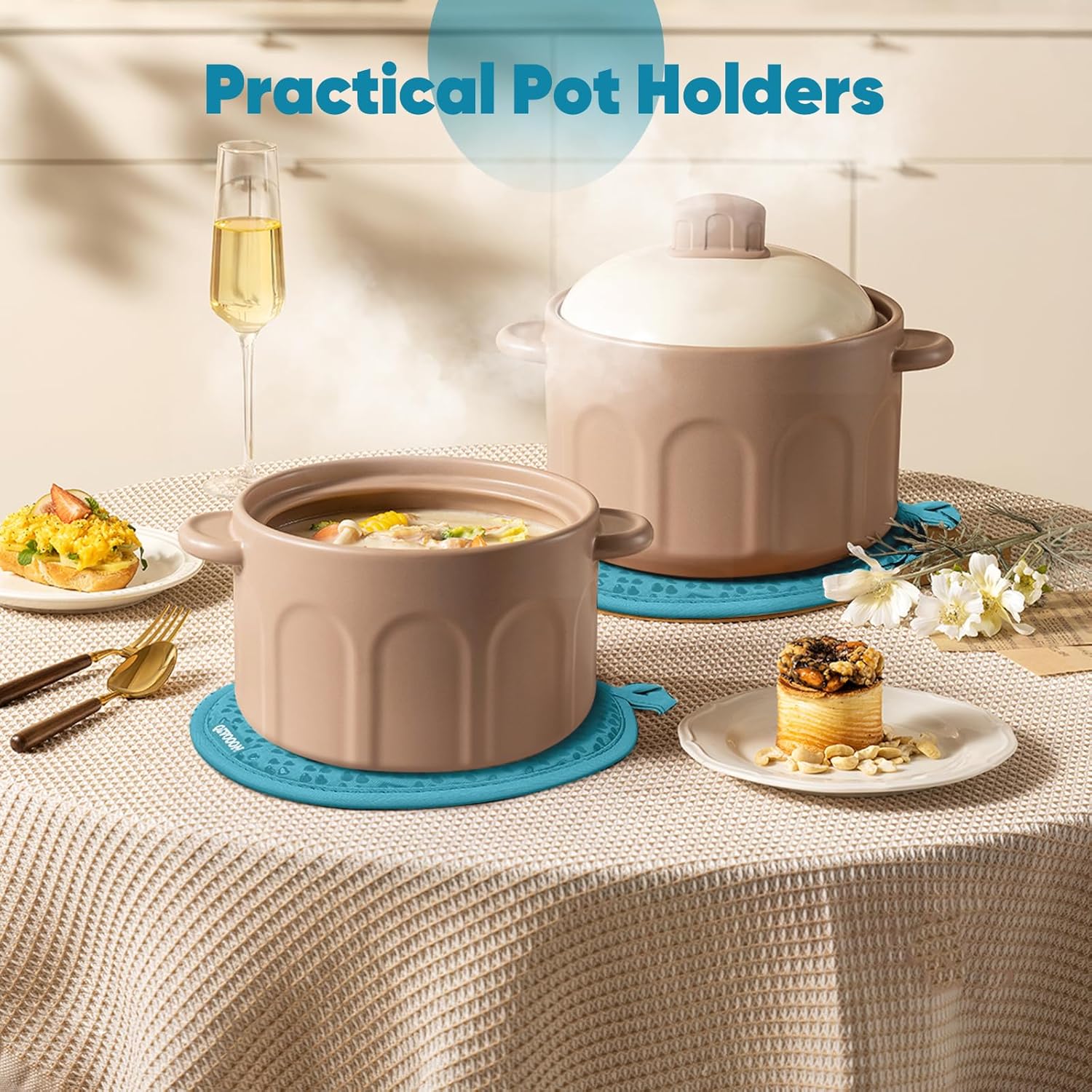 - ️Versatile Use & Easy Clean :The oven mitt and pot holder set are easy to clean and can be machine washed or hand washed.These kitchen essentials can be used for a variety of cooking tasks,including baking,grilling,stovetop cooking and more.The oven glove and pot holder are also a perfect gift for baker and cooker.