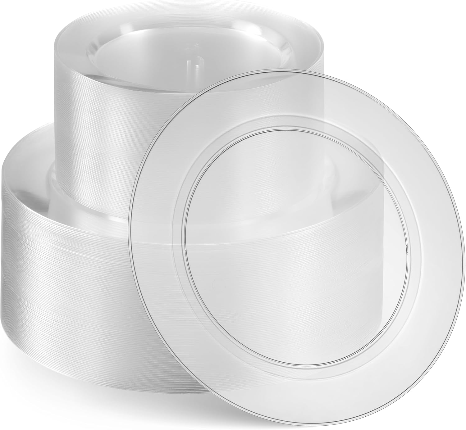 Munfix 100 Clear Plastic Plates Set, 50 Pcs 10 Inch Plastic Dinner Plates and 50 Pcs 7 Inch Plastic Dessert Plates, Elegant Fancy Heavy Duty Disposable Plates for Party, Wedding, Clear