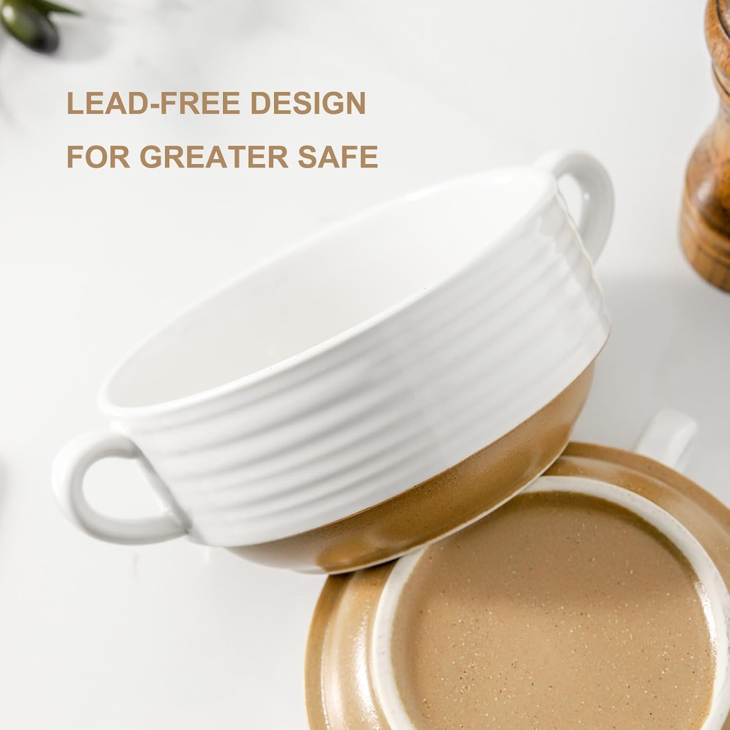 Hasense French Onion Soup Bowls, 20 oz Ceramic Soup Bowls with Handle, Stacked Oven Safe Bowl Set, Perfect for Chili, Beef Stew, Pasta, White Soup Serving Bowls for Kitchen, Set of 4