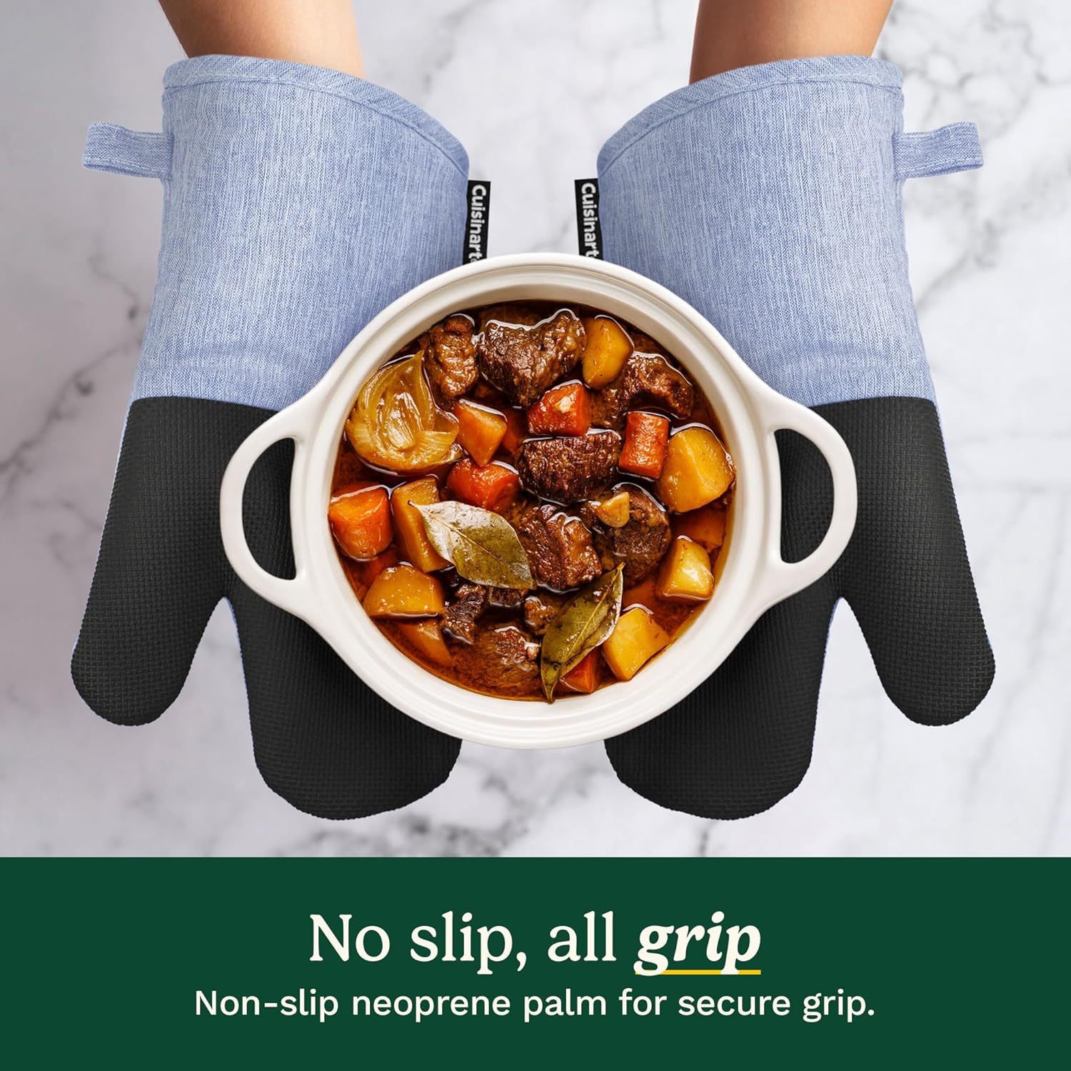 - THOUGHTFUL GIFT FOR ANY OCCASION: Ideal for bridal showers, holidays, weddings, and housewarmings; the Cuisinart Chambray Oven Mitts make a practical and stylish gift, combining comfort, durability, and versatility for any cooking enthusiast. A perfect addition to any pot holders for kitchen collection!